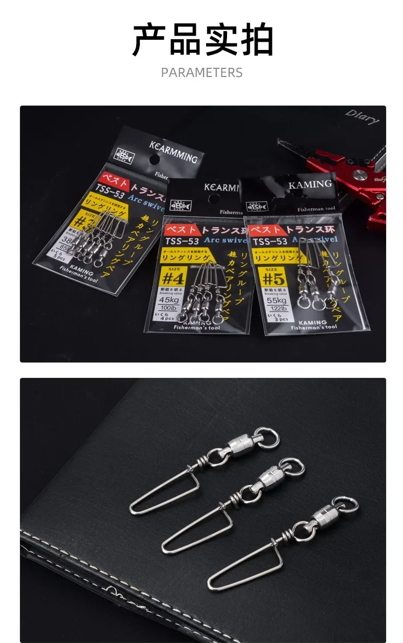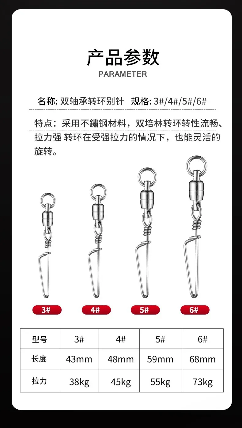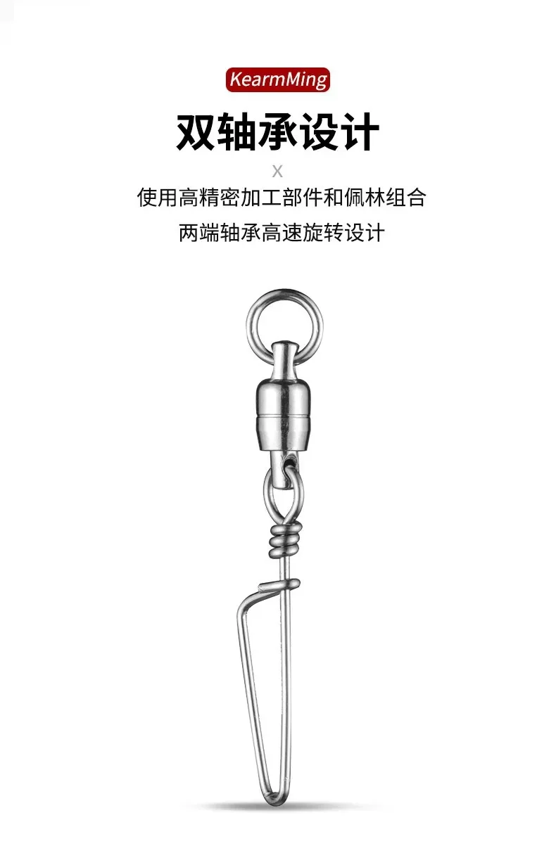KEARMMING Anillo giratorio de doble rodamiento de acero inoxidable Pasador curvo Pesca en barco de mar Versión reforzada