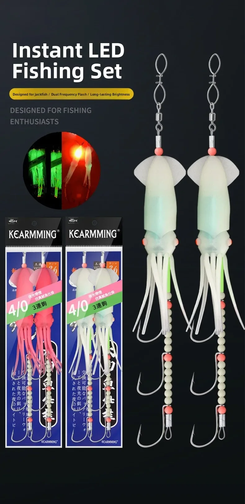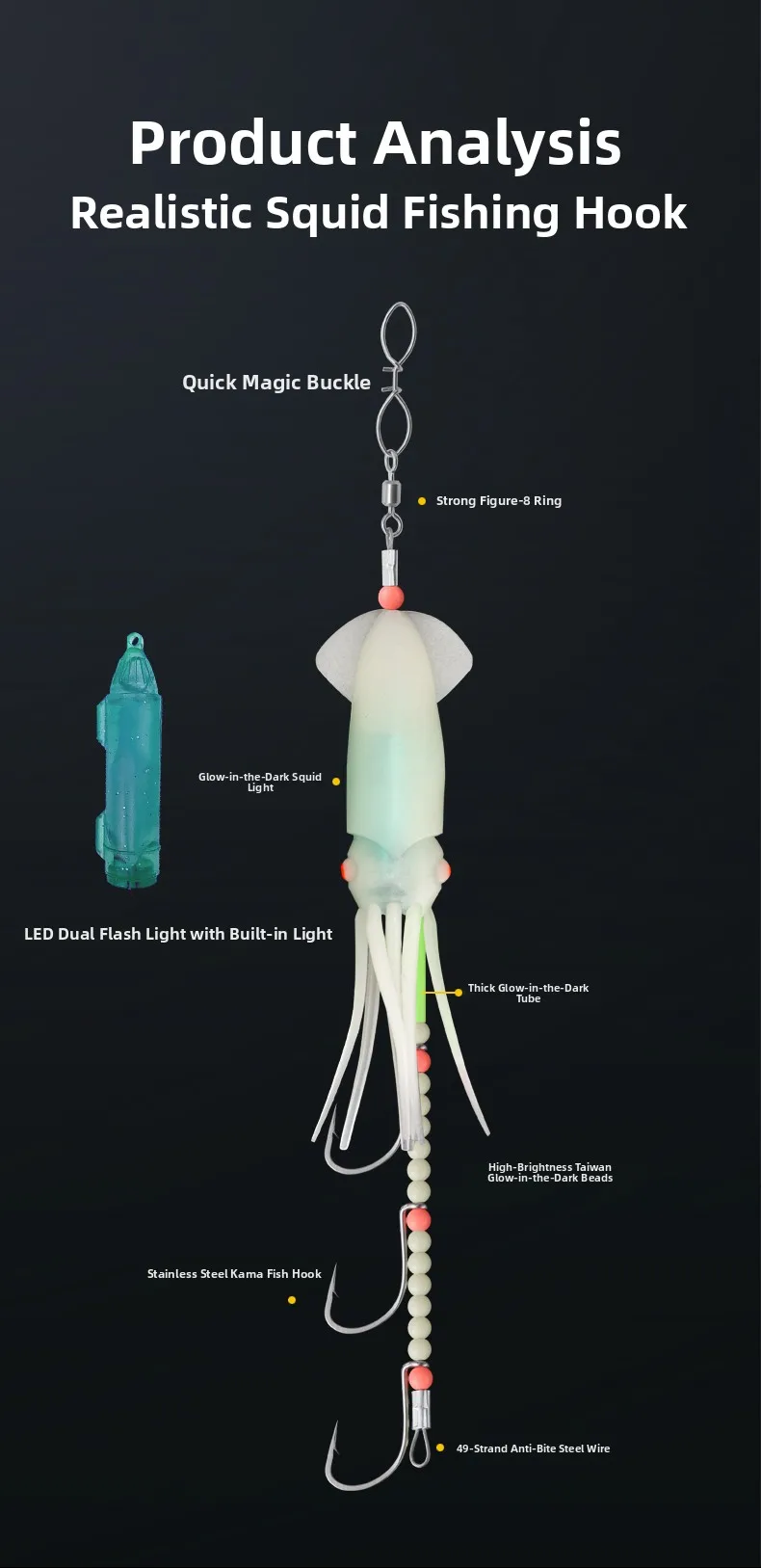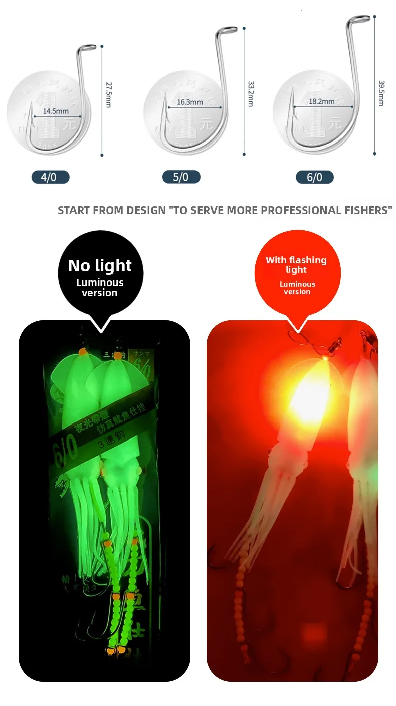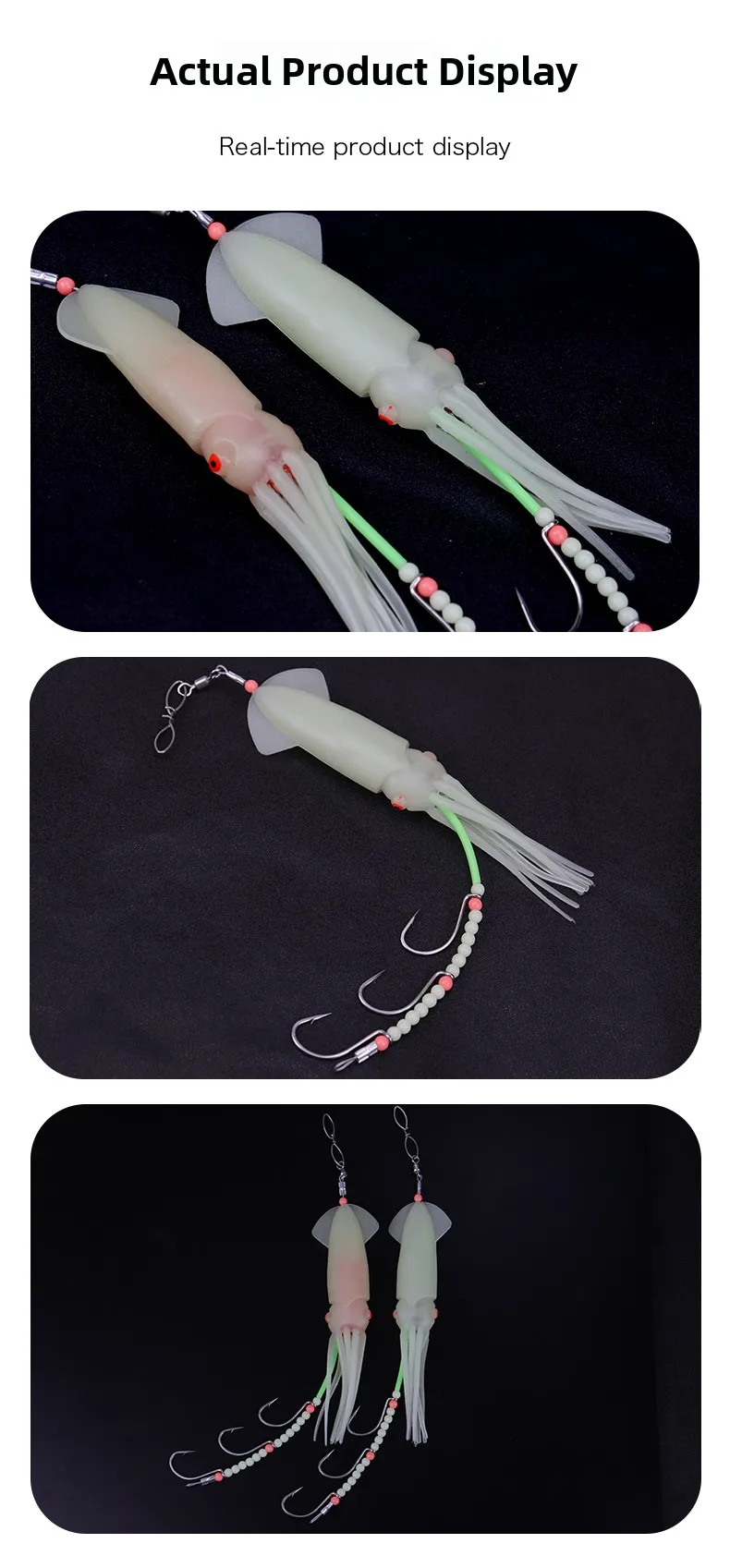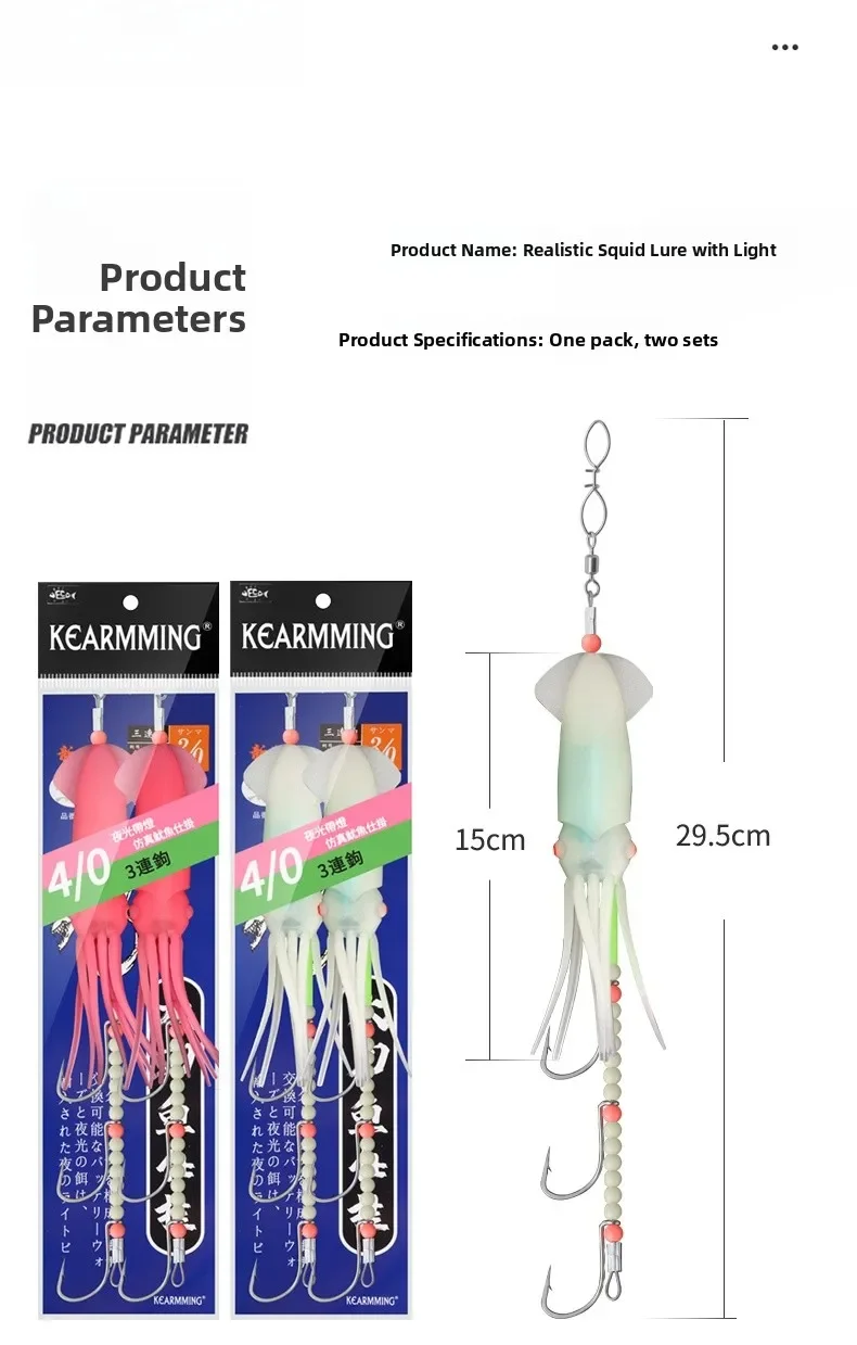 El diseño realista de la luz de los calamar atrae a los peces de manera efectiva, mejorando su experiencia de pesca.