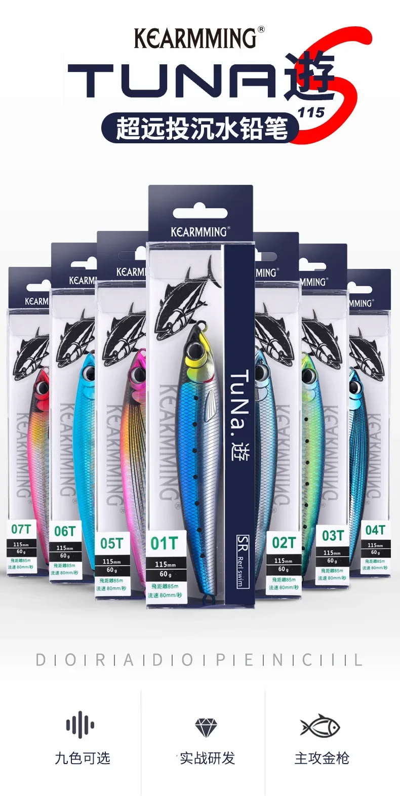KEARMMING Shore Casting barco pesca hundimiento lápiz cebo falso 115mm 60g especializado en todo tipo de mariscos atún señuelo de carretera