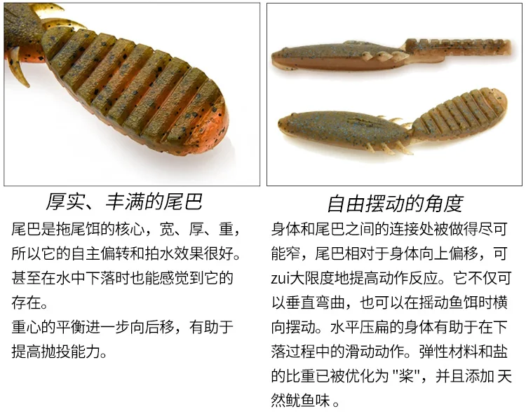 Keitech-Castor de remo especial hecho en Japón, cebo suave de Luya, cola de paleta de camarón