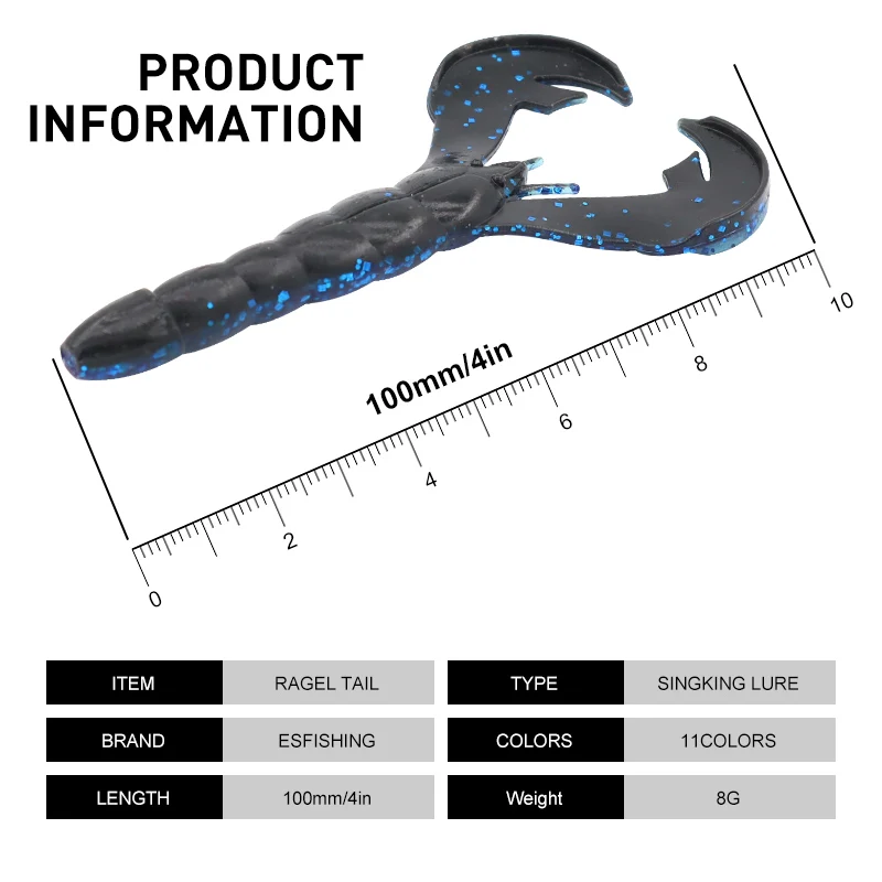 KESFISHING-Cebo Artificial suave Isca Rage Tail Craw, 4 pulgadas, cangrejo sobre orugas, añadir sal, señuelo de Pesca de lubina, aparejos de sales