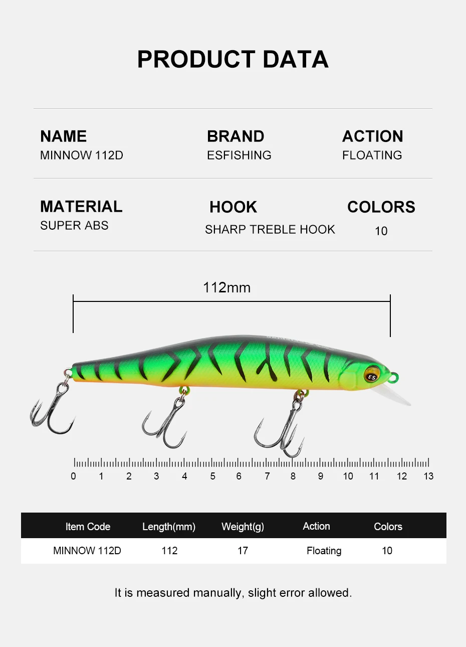 KESFISHING-Cebo duro con sistema de peso magnético, señuelo de pesca de calidad, 112mm, 17g, 0,8-1,2 m