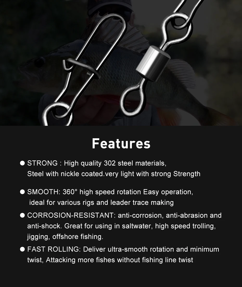 KESFISHING-conector de Pesca de 20 piezas, Pin de rodamiento giratorio, broche giratorio, señuelo, aparejos, accesorios de Pesca