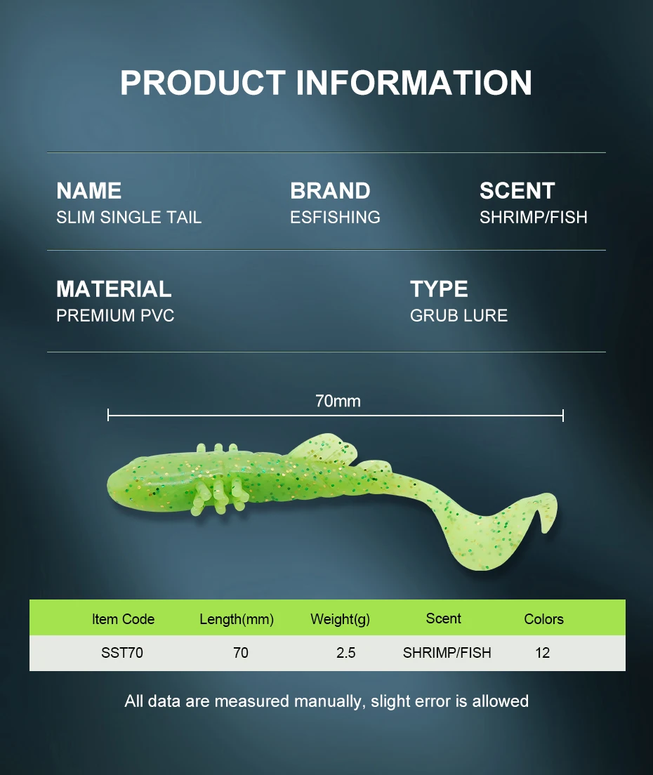 KESFISHING-Nuevos Señuelos de Pesca artificiales de plástico suave, cebos delgados de una sola cola, 70mm, 2,5g, olor atrayente