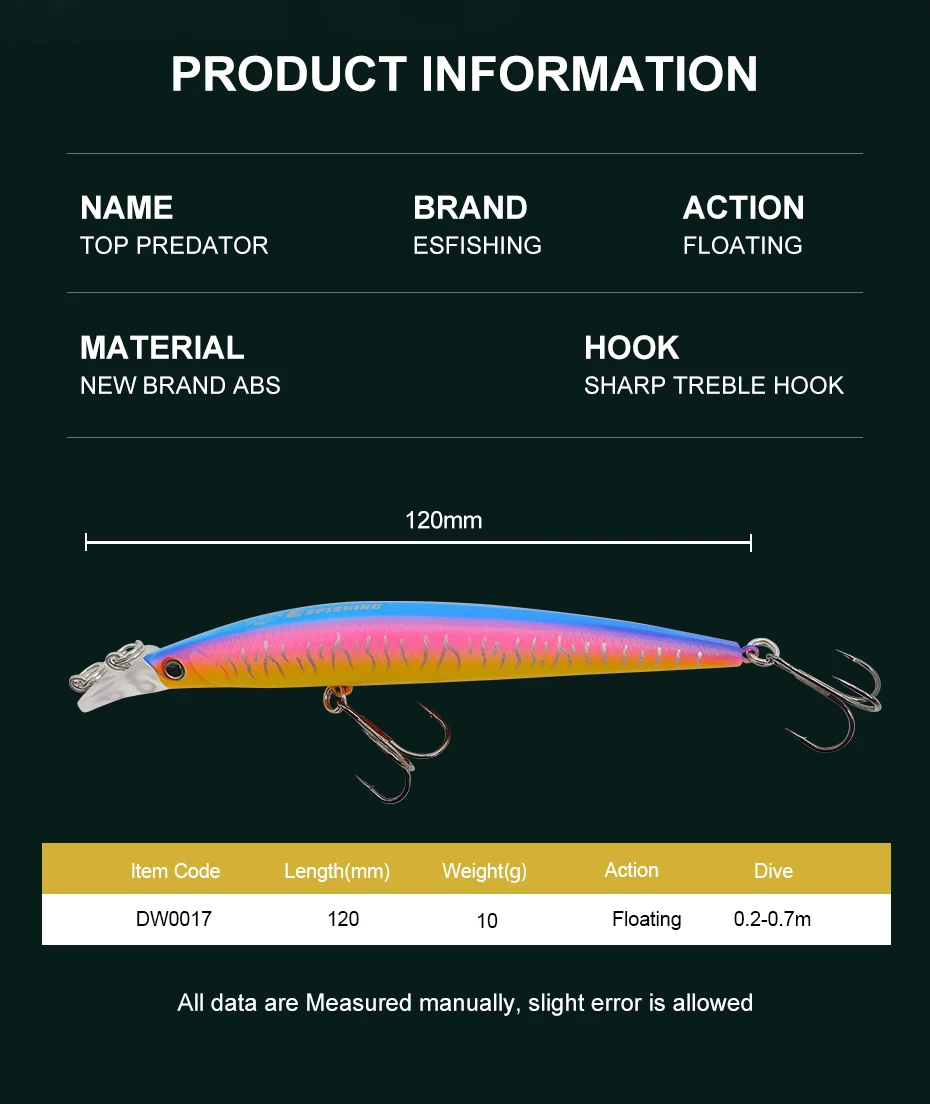 KESFISHING-señuelo duro flotante para pececillo, 12cm, 10g, buceo, 0,2-0,7 m, Wobbler, cebos de plástico profesionales, Lucio de doble profundidad, novedad de 2023