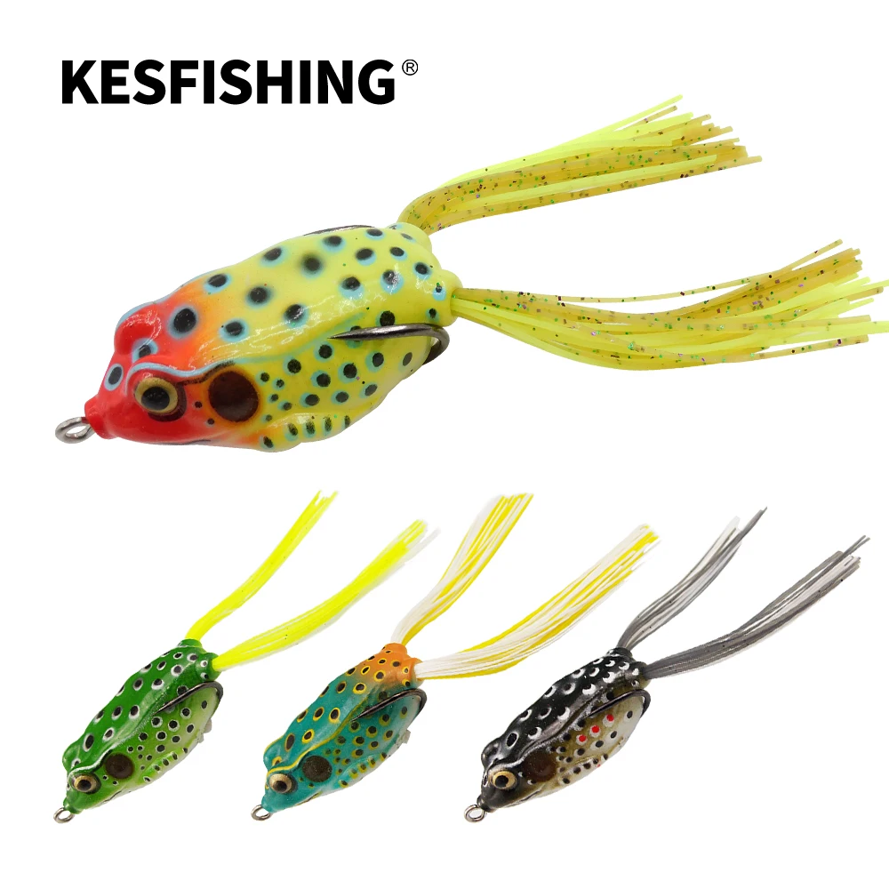 KESFISHING-señuelo de rana hueca, 2 piezas, 6,5 cm, Crankbait de agua superior, cebo de pesca de lubina, cabeza de serpiente, pez con ganchos dobles de silicona