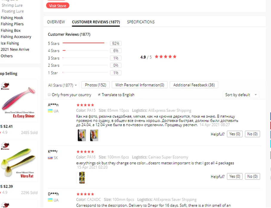 Cada vez, estoy satisfecho con el producto y la entrega rápida como se esperaba. Altamente recomendado como cebo de pesca.