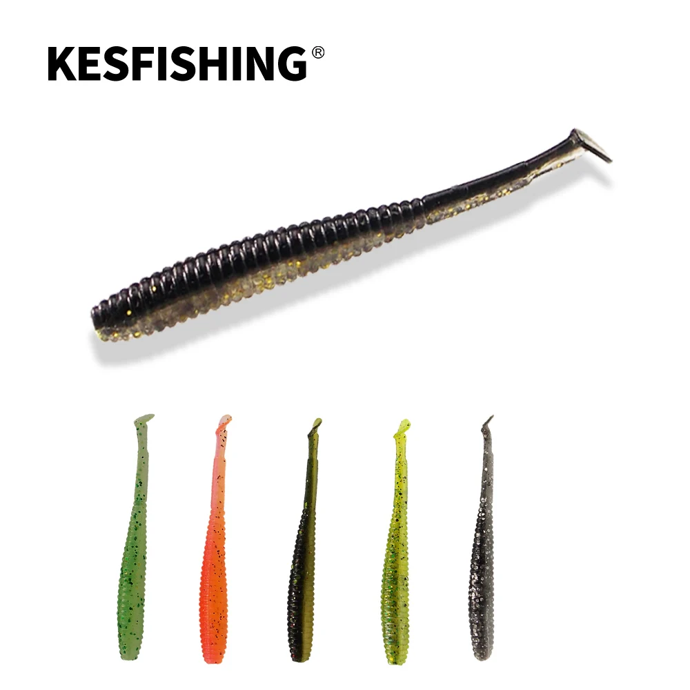 KESFISHING Señuelos de Pesca de plástico suave, cebos de cola de sábalo de 70mm, Leurre Souple, agua salada, olor a Camarón de la mejor calidad con sales