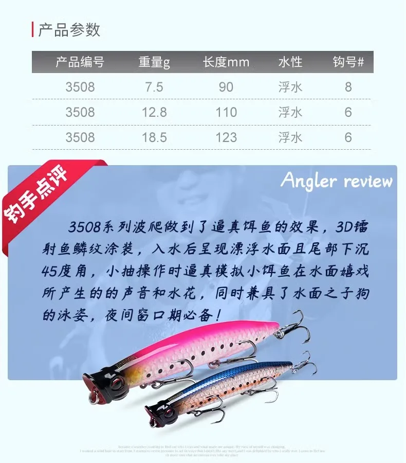 King 3508-señuelo de escalada con ondas, sistema de superficie flotante 3D, onda fantasma, cebo falso de caída de largo alcance