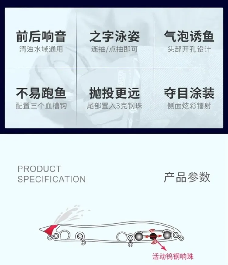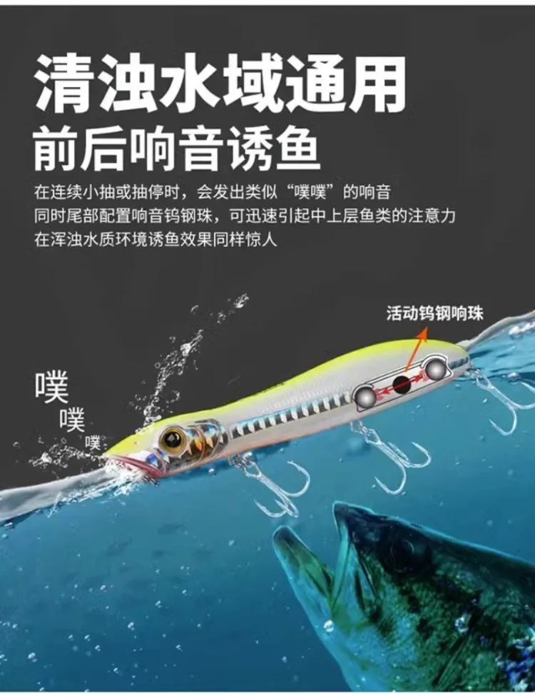 King Changing-Cebo de superficie flotante 6501, sistema de lápiz de escalada ondulada, cebo falso de lanzamiento lejano en agua dulce