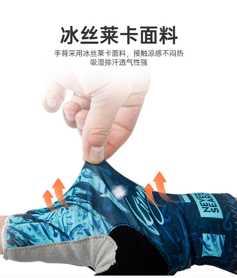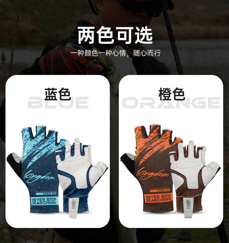 King Lure-guantes de pesca profesionales, protector solar de seda helada en verano, medio dedo, antideslizantes, resistentes al desgaste, transpirables