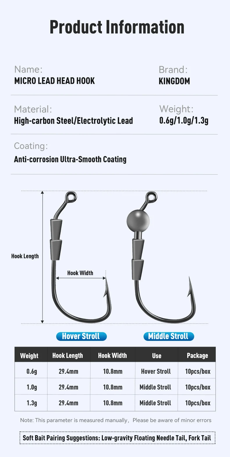 Kingdom 10 Uds anzuelo de lanzamiento Hover 0,6g 1g 1,3g anzuelo con cabeza de plantilla de acero rico en carbono lubina trucha aparejos de pesca accesorios gancho