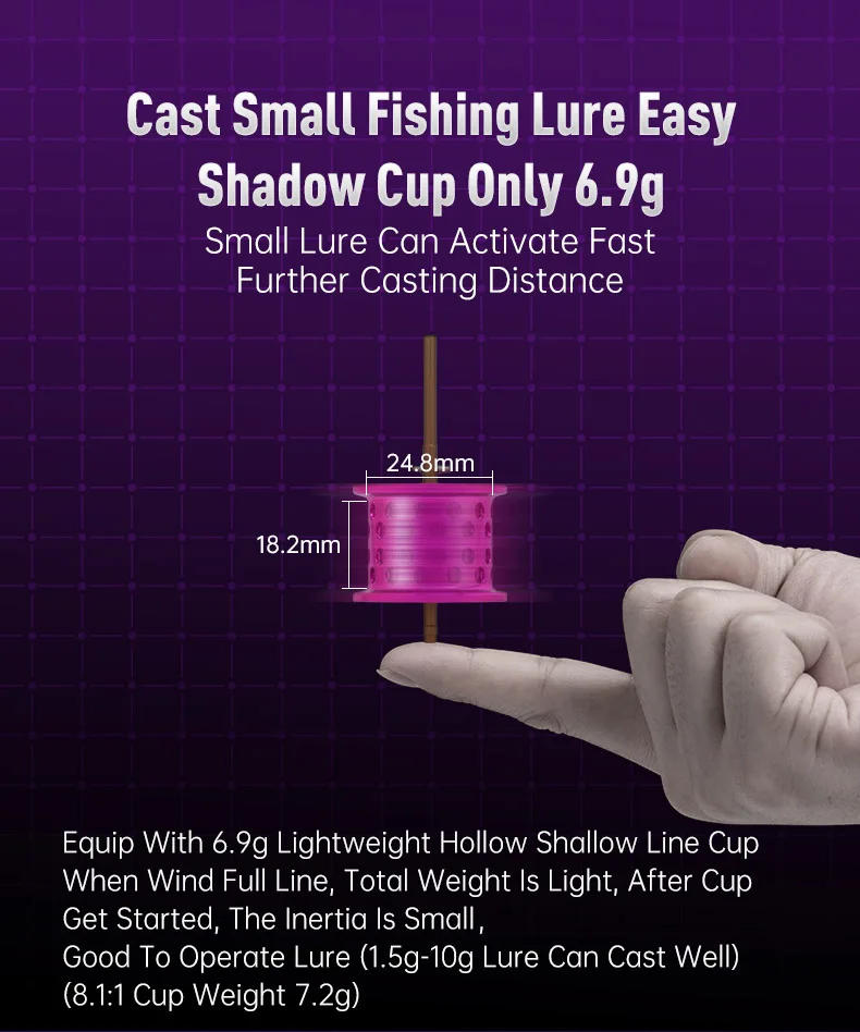 El peso del carrete de 7g es excelente! El rodamiento tiene una gran cantidad de grasa aplicada, así que es mejor desengrasarlo. Se recomiendan señuelos que pesen 2g o más. No es imposible lanzar 1g, pero depende de la caña.