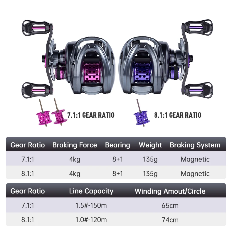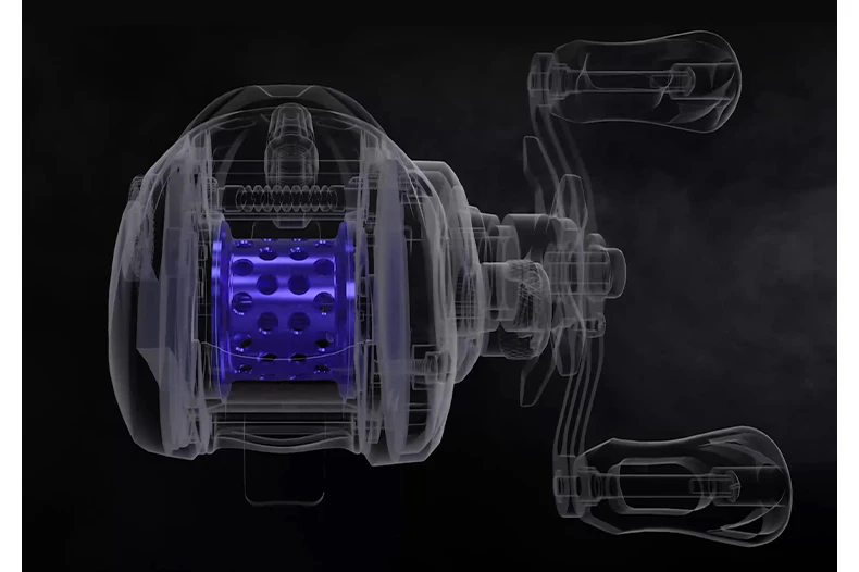 5.¡Conmutación de modo dual para lanzamientos de larga distancia con microtarget y lubinas y carpas cruceros!Relación de 8 velocidades para una pesca ultrarrápida y agresiva, ¡incluso en enganches!¡Con un carrete de 74 cm por vuelta, puedes capturar la línea más rápido de lo que el pez puede escapar!