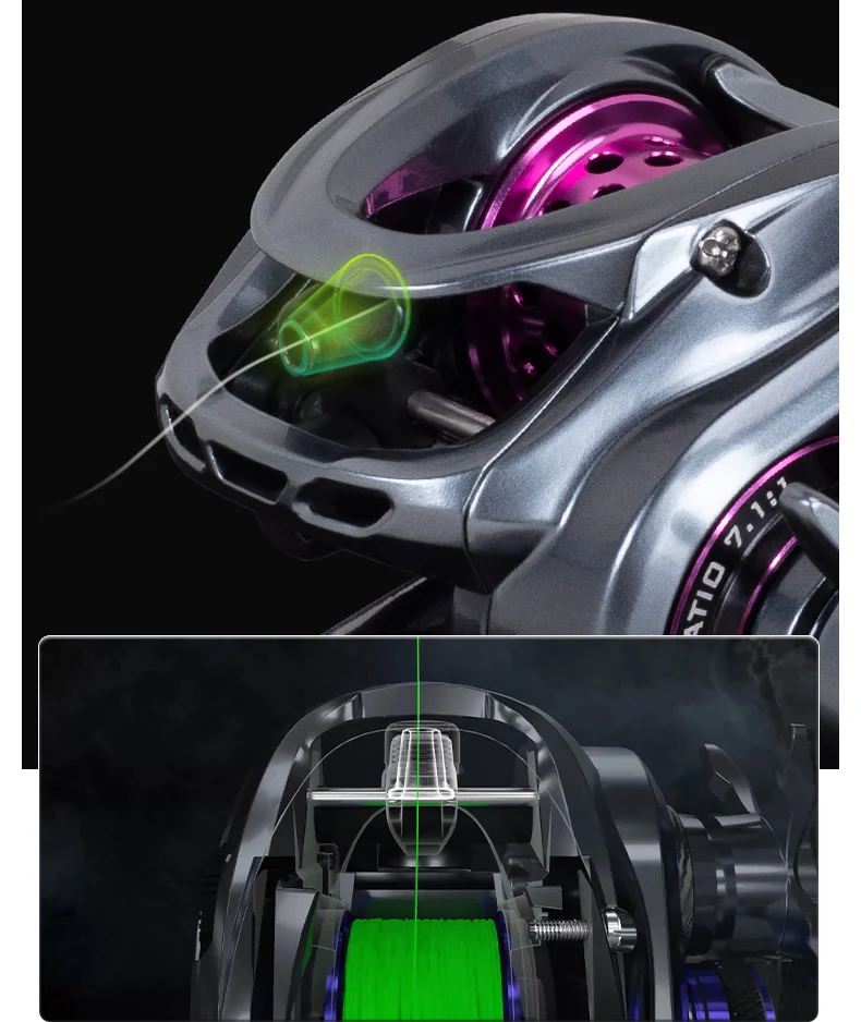 6.Recuerdos de coeficiente de fricción en un 80%!¡El protector de línea curva y la desviación de flujo de baja resistencia permiten que los señuelos vuelen como misiles a través del viento!¿Una salida de línea estándar?¡Eso es cosa del pasado!