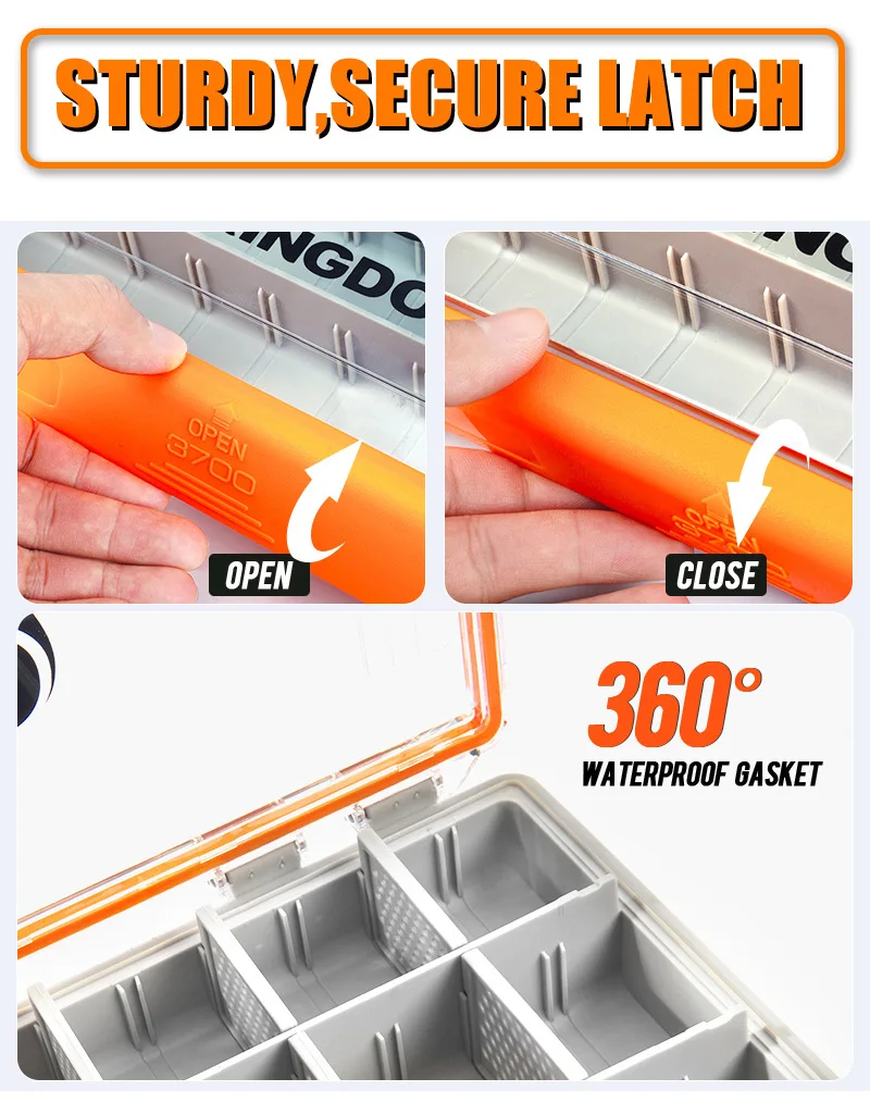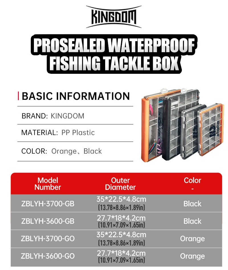 Kingdom 3700 3600 Caja de aparejos de pesca Caja de almacenamiento organizadora de señuelos impermeable grande con divisores extraíbles para cebos duros y herramientas