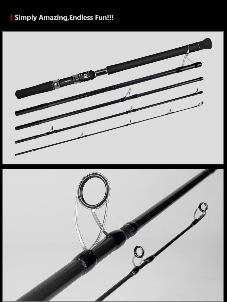 2.[Parámetros precisos] Longitud de 9'6", diseño de 5 secciones, ¡se encoge solo 62,5 cm!Peso máximo del señuelo de hasta 100 g, línea de PE 4,0, maneja fácilmente varios escenarios de pesca en el mar.¡Acción MF, sensibilidad excepcional, sensación incomparable!