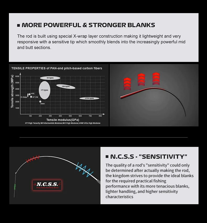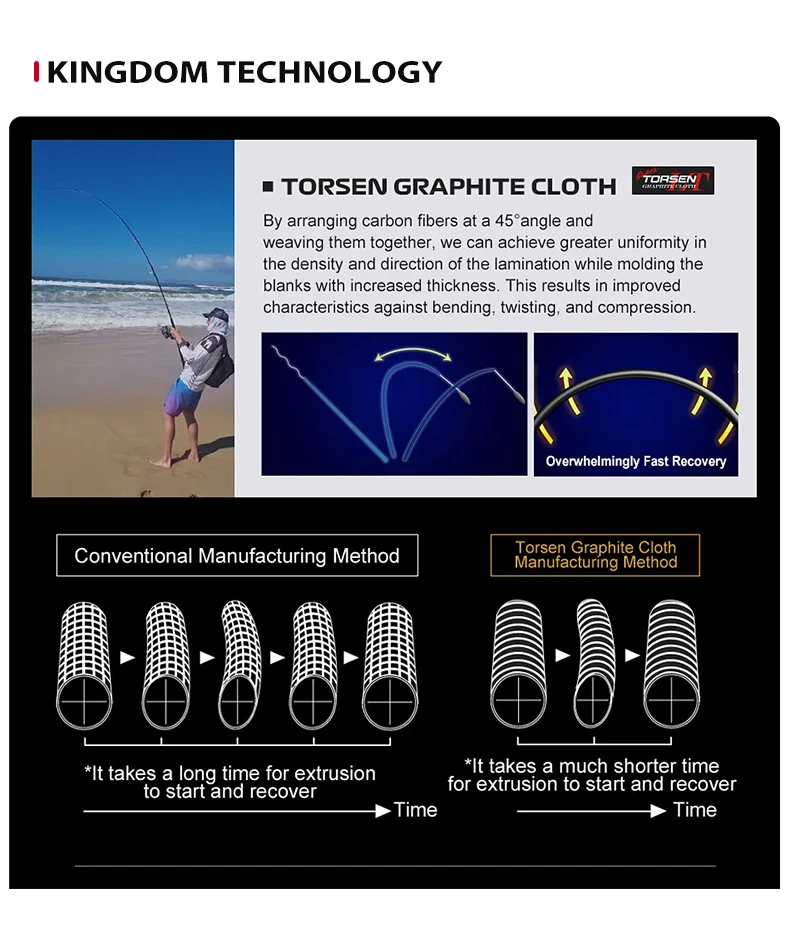 1.[Tecnología perturbadora] Fibra de carbono TORAY + tela de grafito TORSEN, 45° Tecnología de tejido en ángulo, mejora drásticamente el rendimiento de flexión, torsión y compresión de la varilla.¡Velocidad de rebote ultrarrápida, superando todas las demás cañas de viaje del mercado!