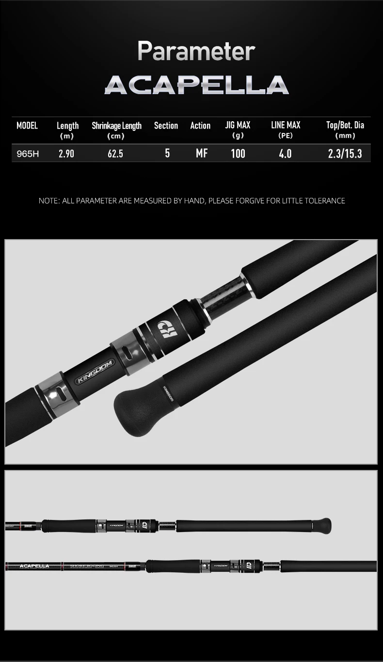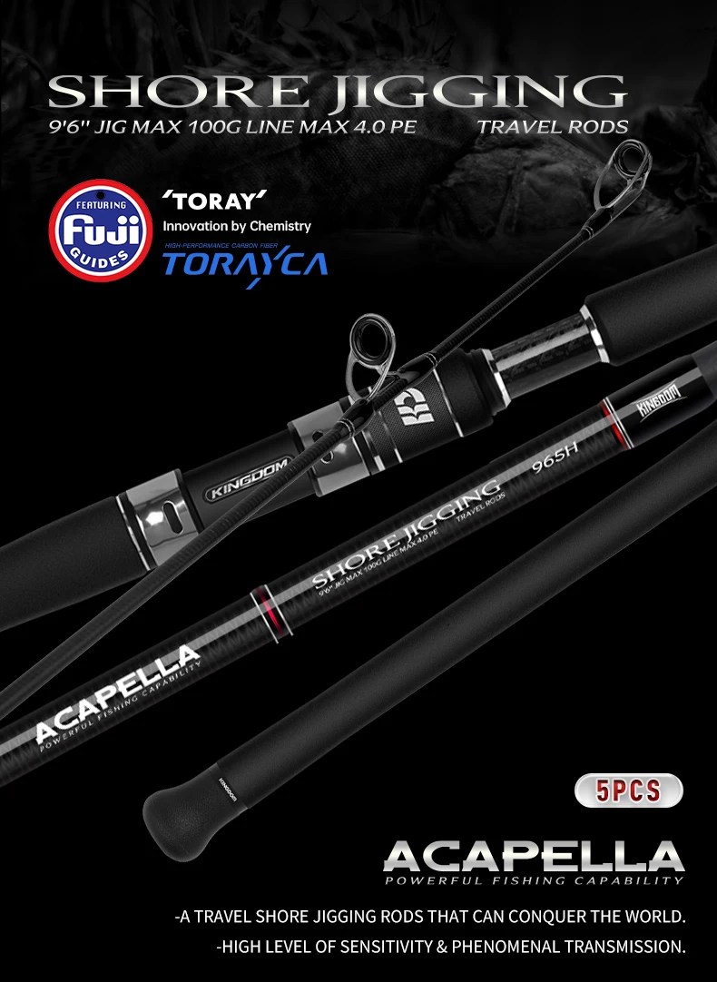 Kingdom Acapella Travel Shore caña de pescar 2,9 m H Fuji juego varillas giratorias señuelo 100g portátil 5 secciones Jigging Popping Rod