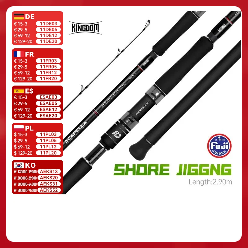 Kingdom Acapella Travel Shore caña de pescar 2,9 m H Fuji juego varillas giratorias señuelo 100g portátil 5 secciones Jigging Popping Rod