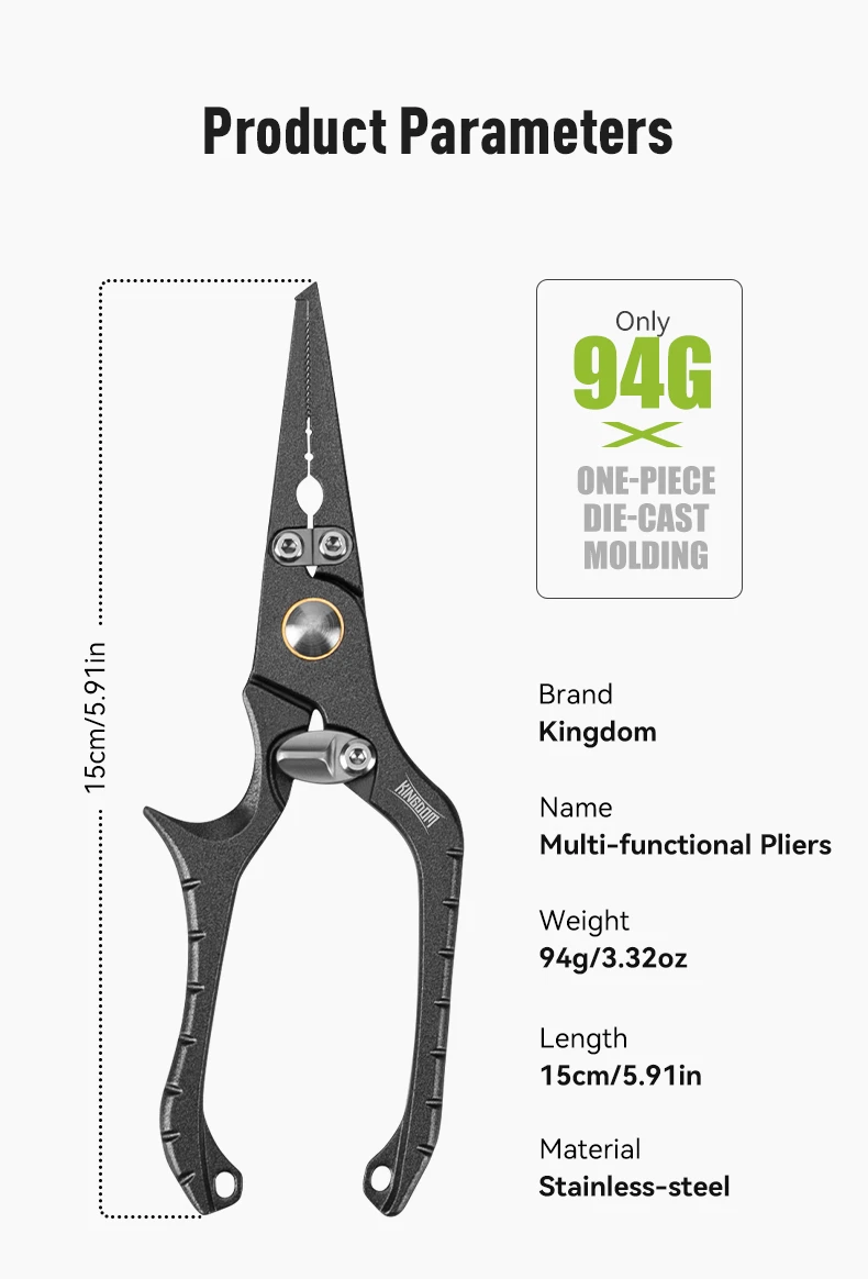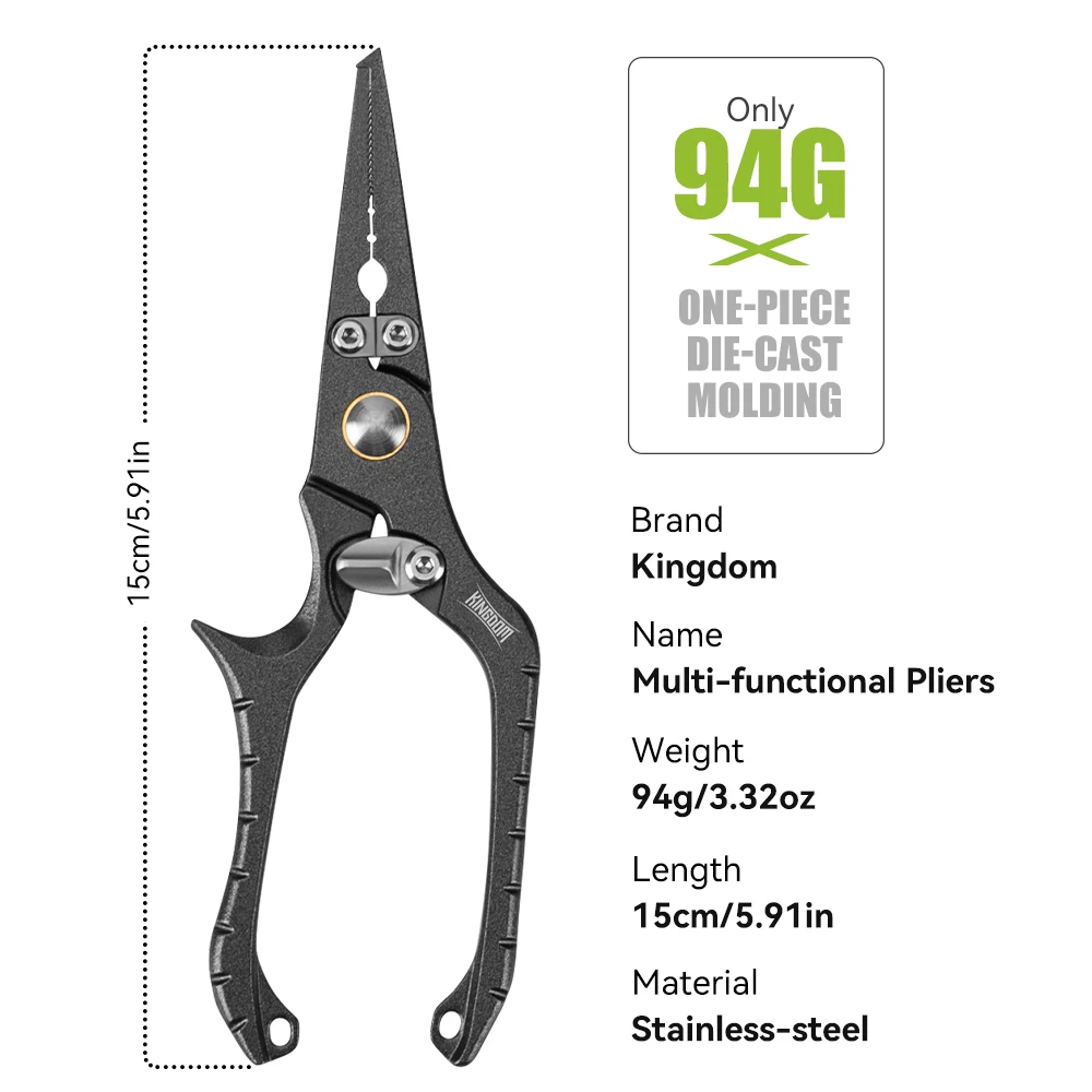 Kingdom-Alicates de pesca multifuncionales, 15cm, 97g, removedor de anzuelos de anillo dividido, aparejos de pesca, equipo de pesca de acero inoxidable