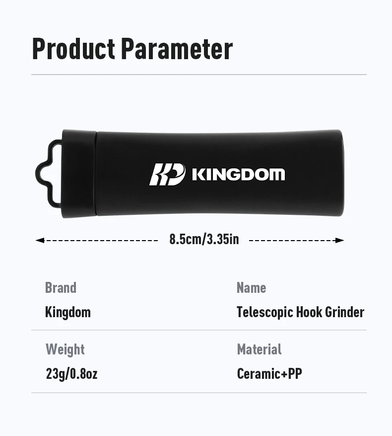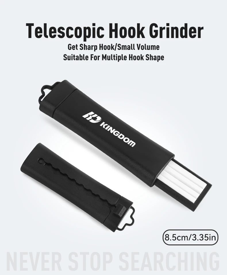 Molinillo de anzuelo telescópico de pesca Kingdom, portátil, 23g, 8.5cm, herramienta para afilar anzuelos al aire libre, accesorios de pesca, sal/agua dulce