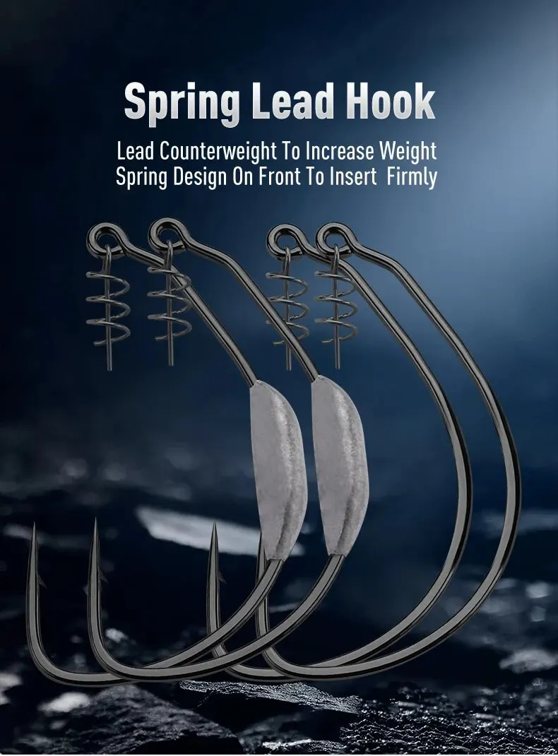 Kingdom Carbon Steel Spring Fishing Hooks 3# 5# 6# 8# 10# Lead Crank Hook with Spring Lock Soft Bait Gear Fishing Accessories