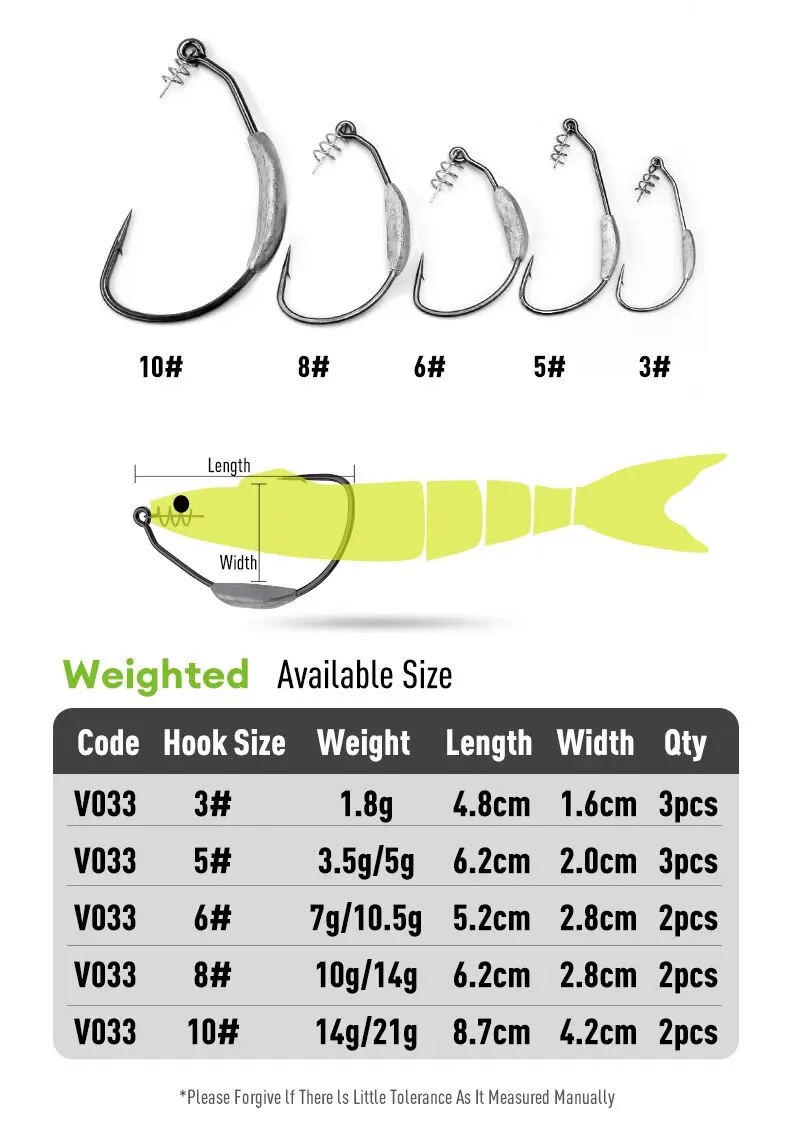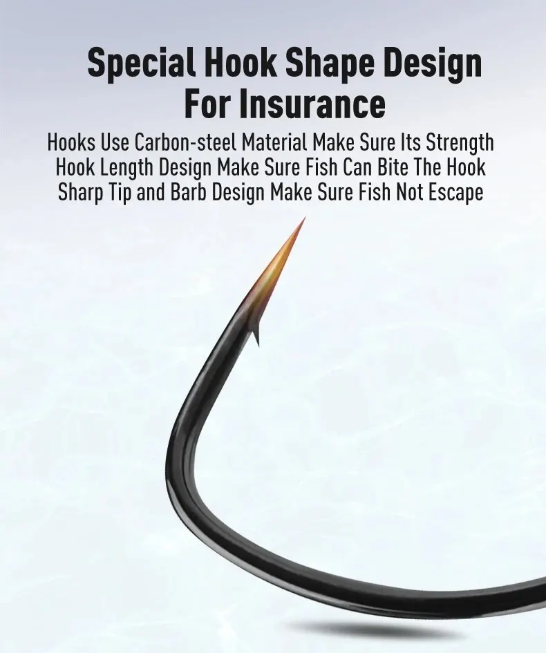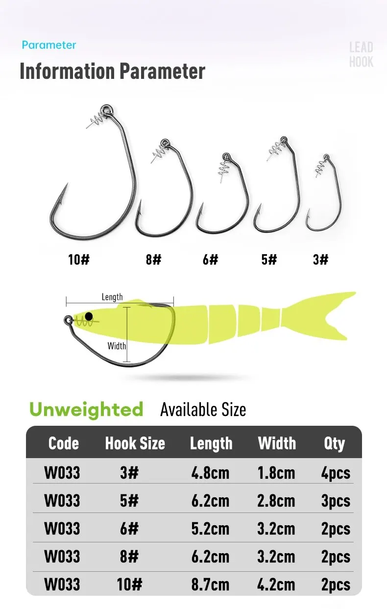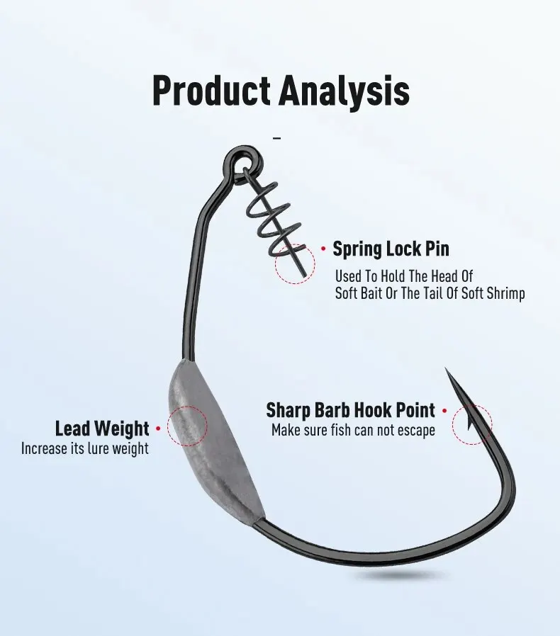 • Diseño de púas:El diseño de púas de estos anzuelos garantiza un agarre seguro en el cebo blando, lo que mejora las posibilidades de una captura exitosa.