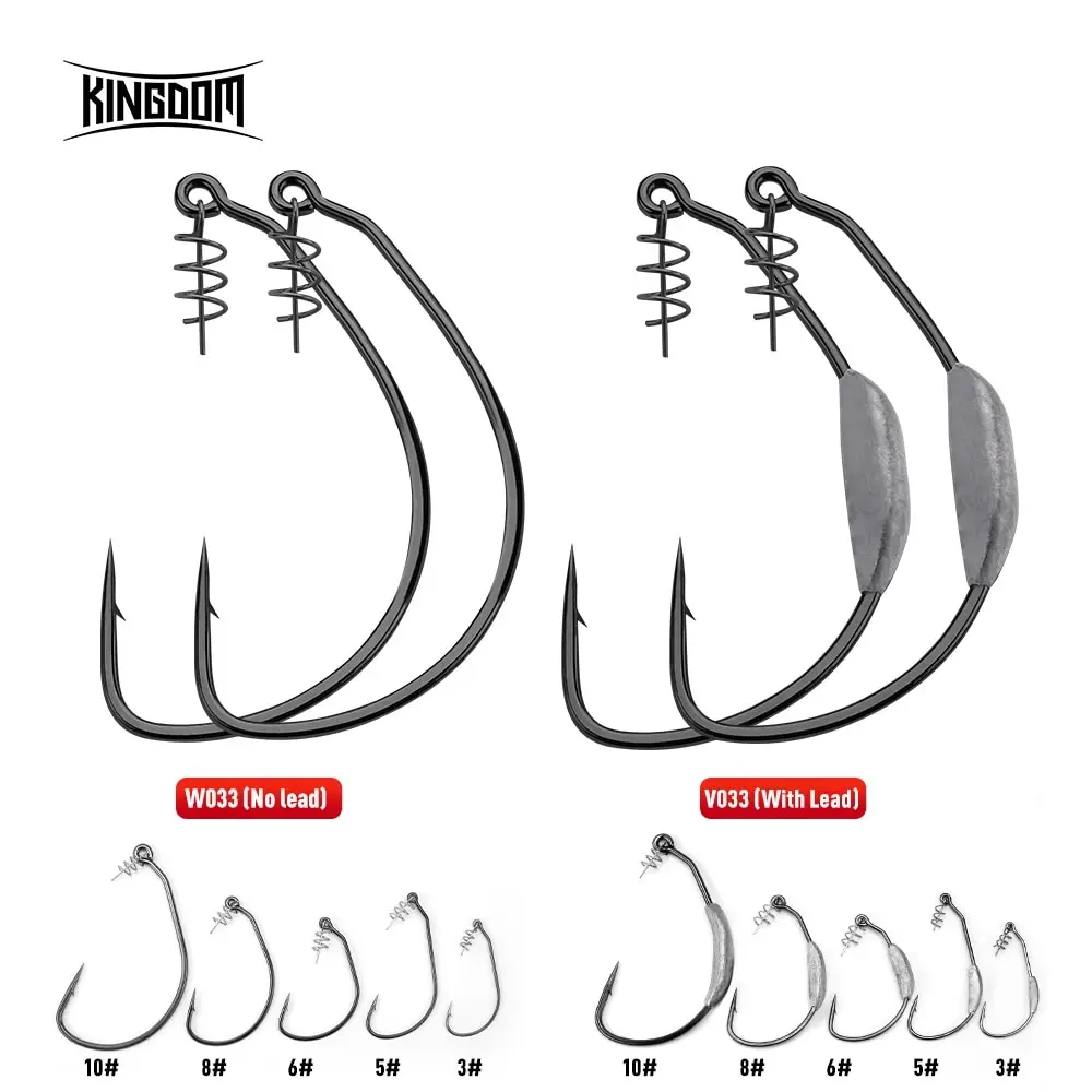 Kingdom Carbon Steel Spring Fishing Hooks 3# 5# 6# 8# 10# Lead Crank Hook with Spring Lock Soft Bait Gear Fishing Accessories