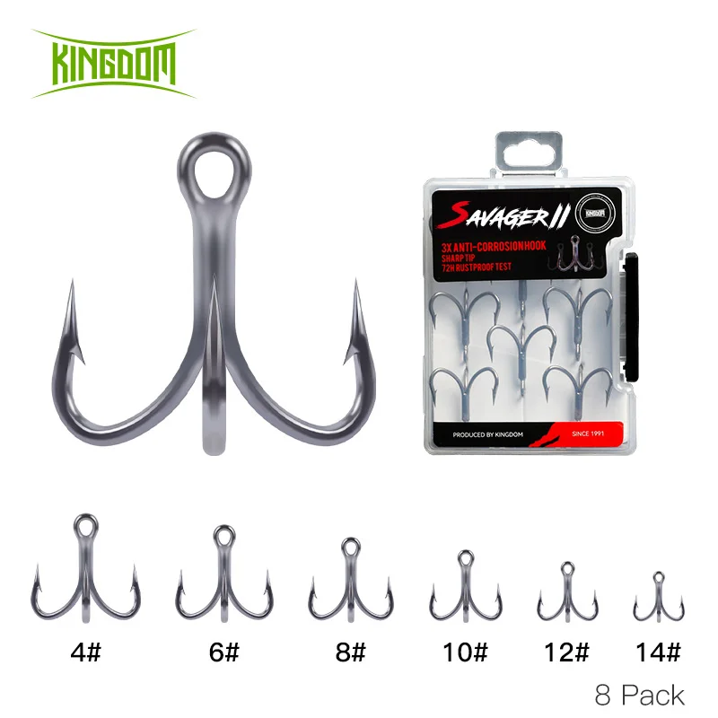 KINGDOM Saltwater 3X Ganchos triples de acero con alto contenido de carbono 4#-14# 8 Uds. Accesorios de aparejos de pesca anticorrosión de alta resistencia