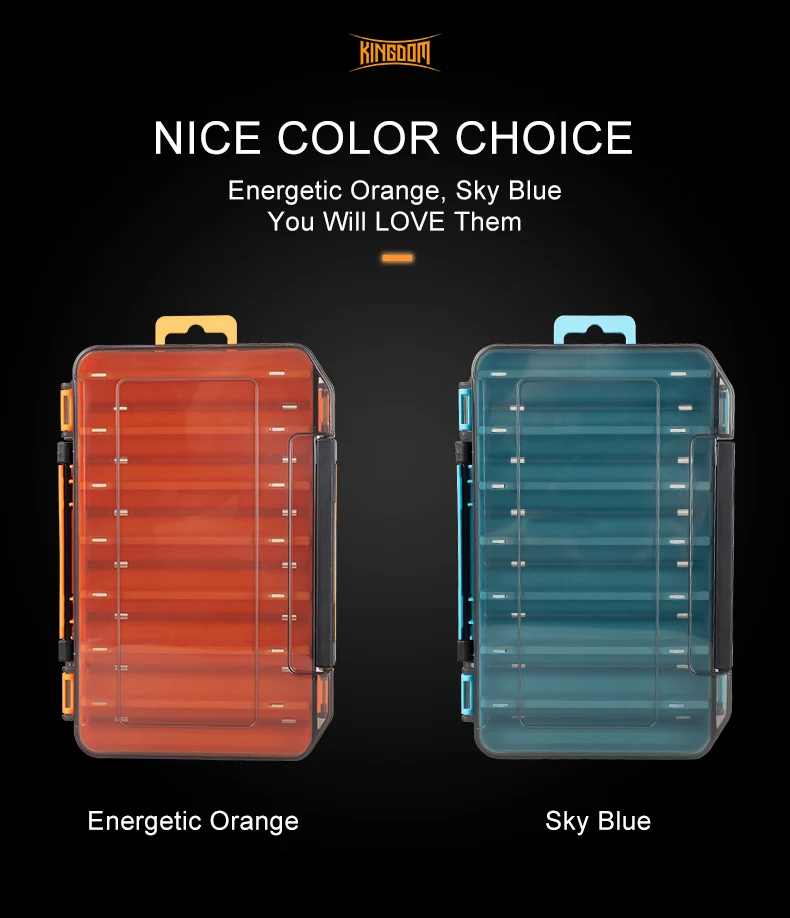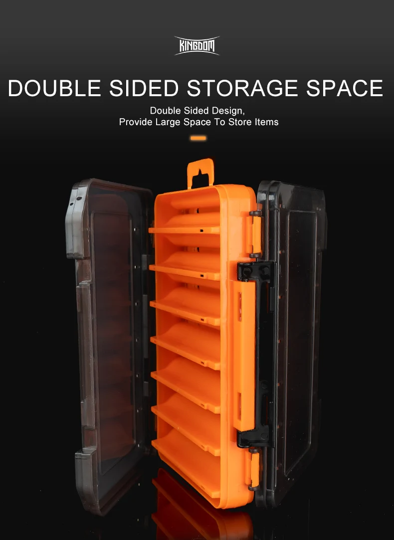 Caja de aparejos de pesca con cebo Kingdom, 12 14 compartimentos, cajas de accesorios para anzuelos de señuelo, caja de almacenamiento de cebo de plástico portátil de doble cara