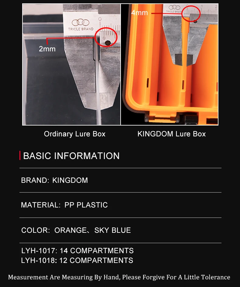 --Si necesita colocar el señuelo Kingdom Minnow, debe quitar la longitud de la lengua antes de comparar las dimensiones de la caja.