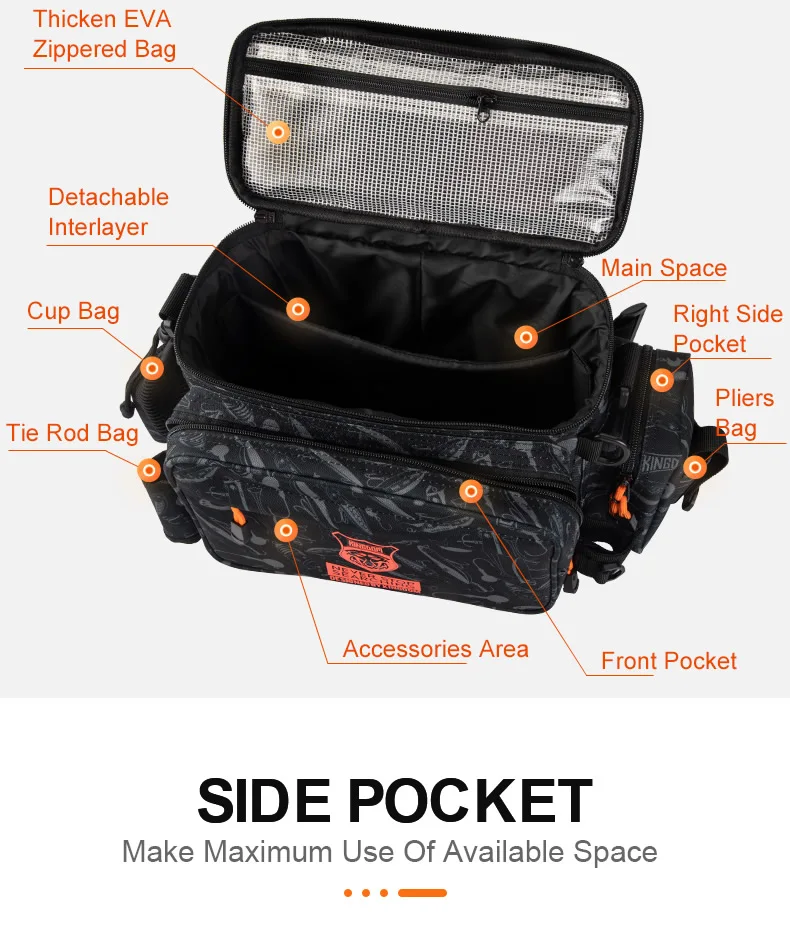 Kingdom-Bolso de pesca impermeable para deportes al aire libre, bolso multifuncional de hombro, gran capacidad, bolso de almacenamiento cruzado individual, novedad de 2021