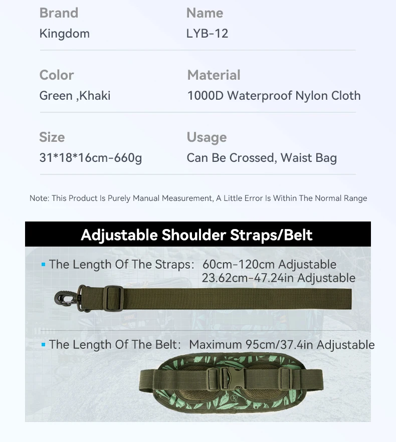 Kingdom-bolsas multifuncionales para aparejos de pesca, 31x18x16cm, 660g, riñonera, señuelos de peces, equipo de almacenamiento de utilidad, bolsa de pesca al aire libre
