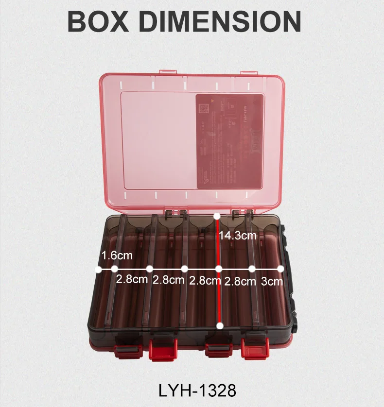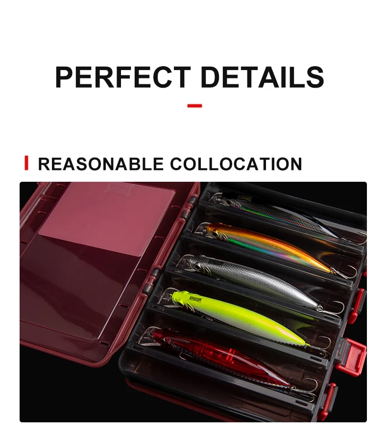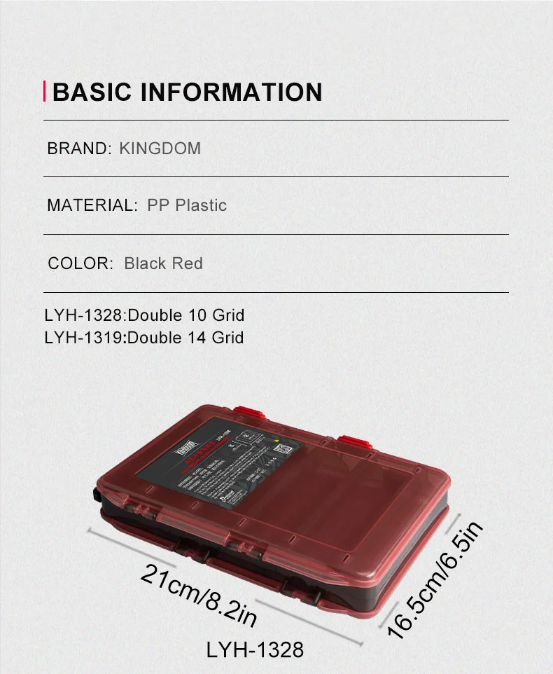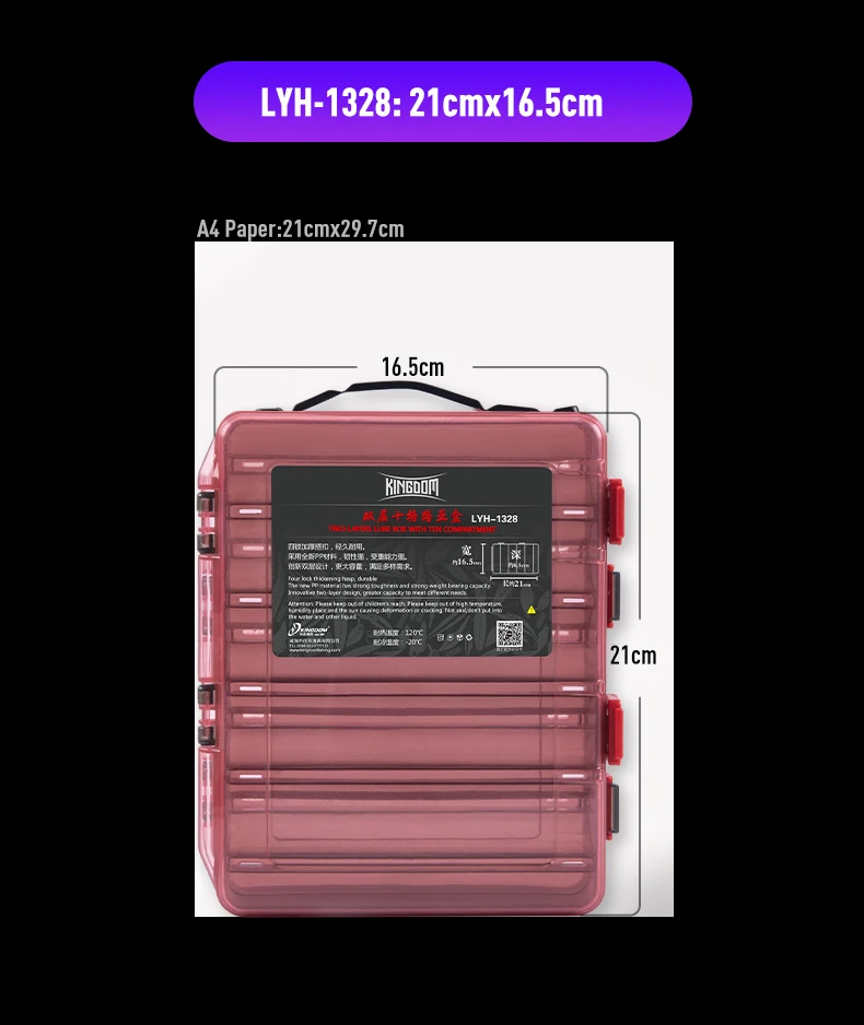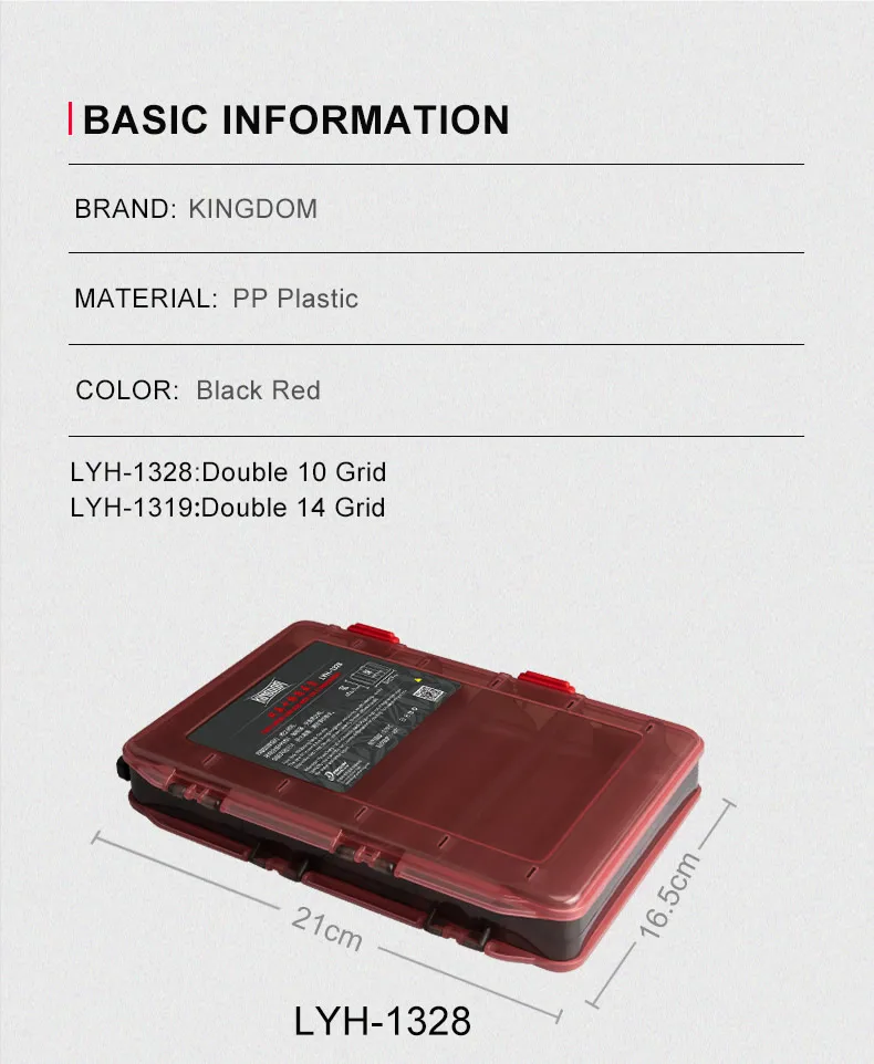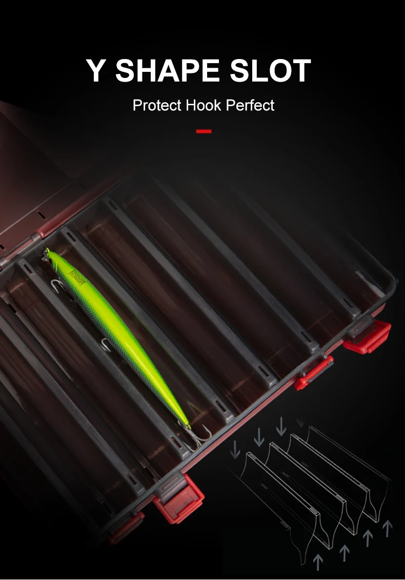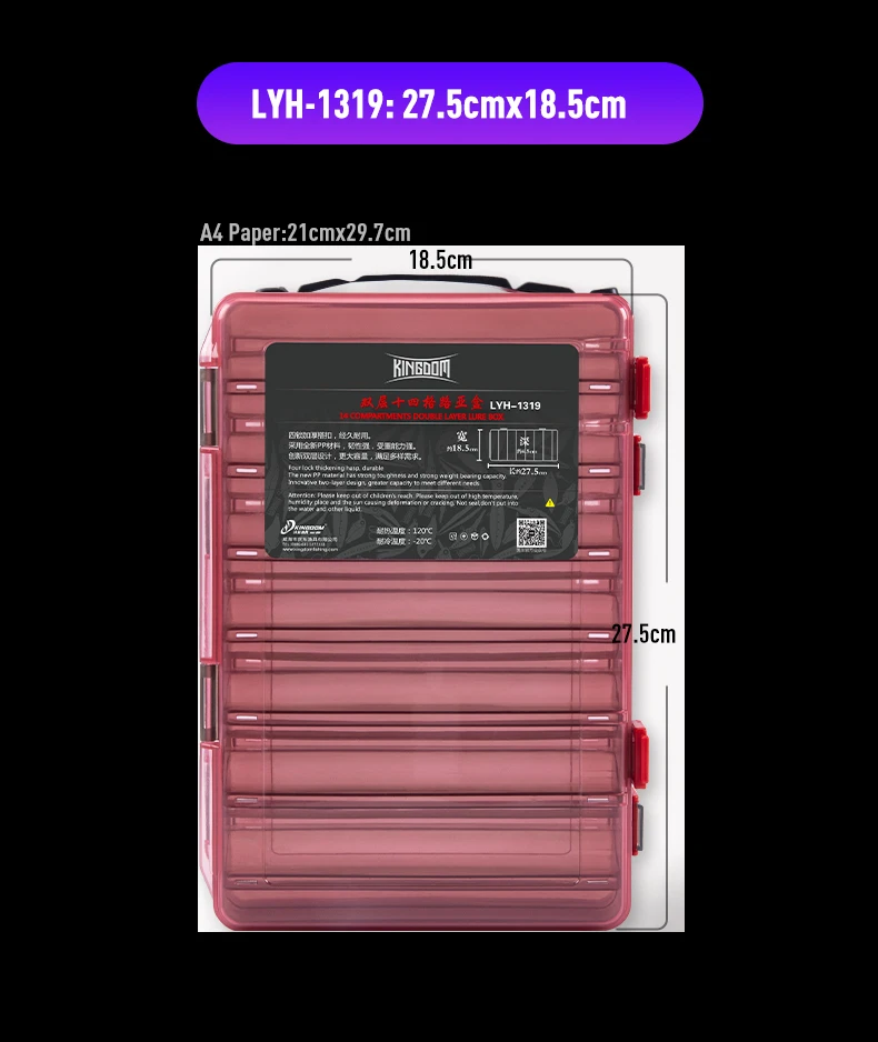 Caja de aparejos de pesca Kingdom, 14 compartimentos, 27,5*18,5*4.5cm, caja de aparejos de plástico de alta resistencia de doble cara, caja de almacenamiento para aparejos de señuelos