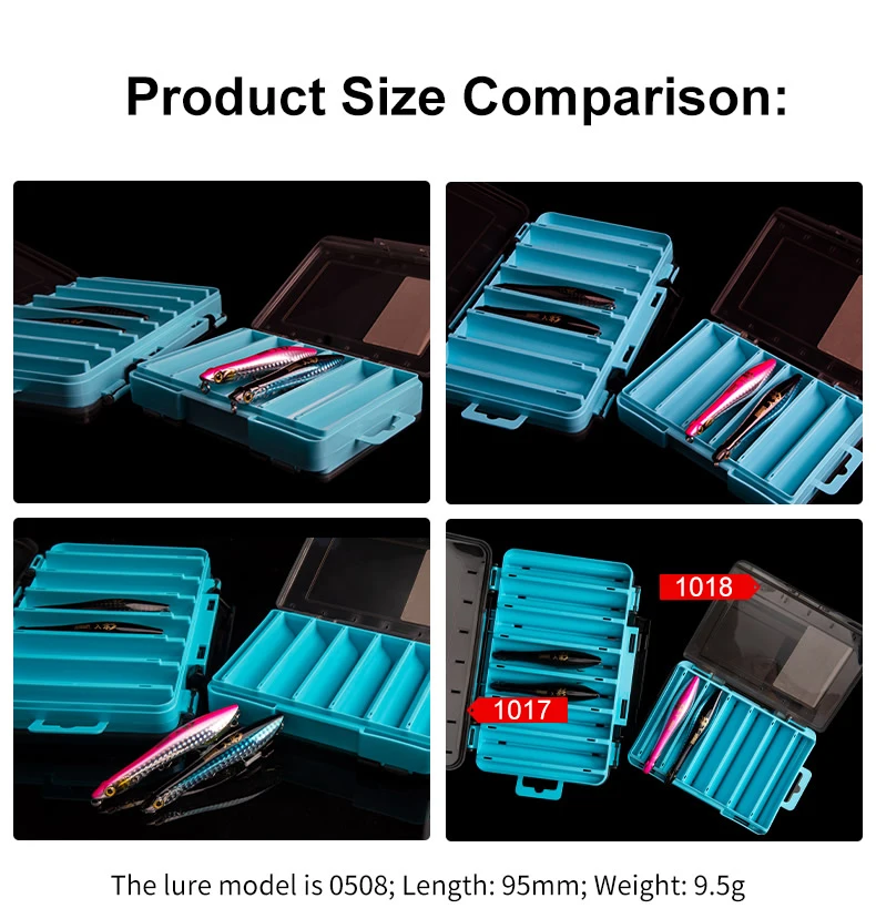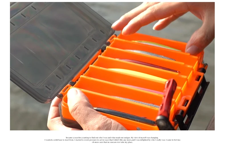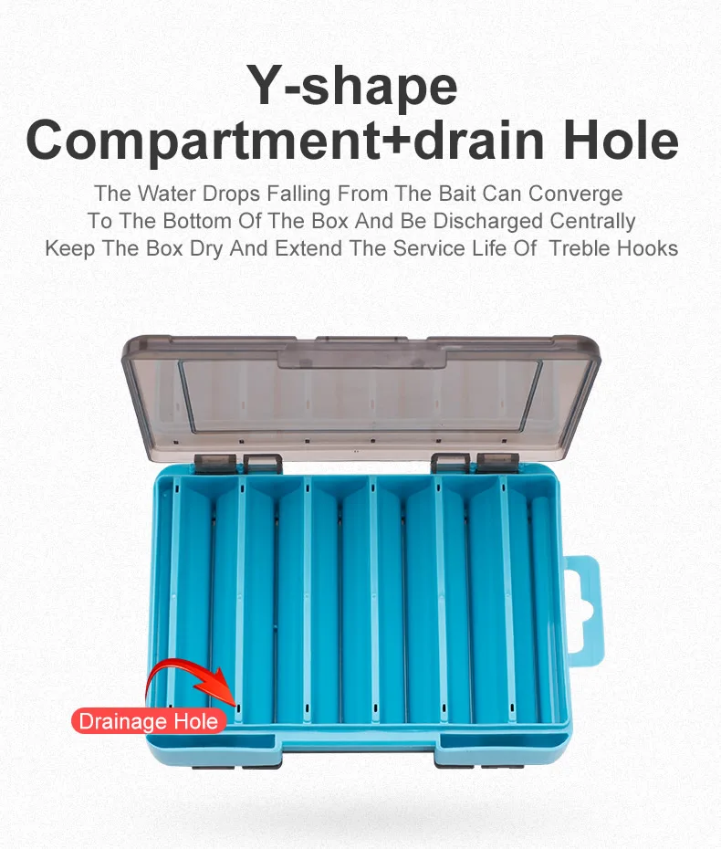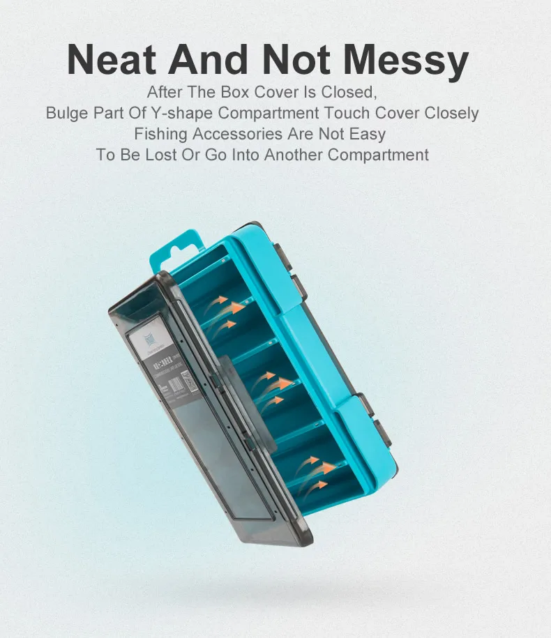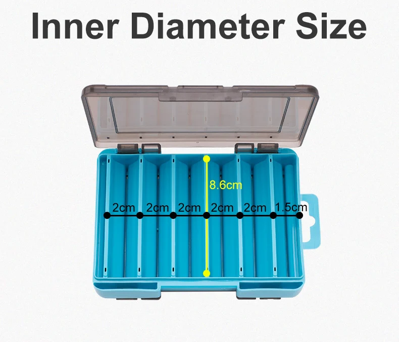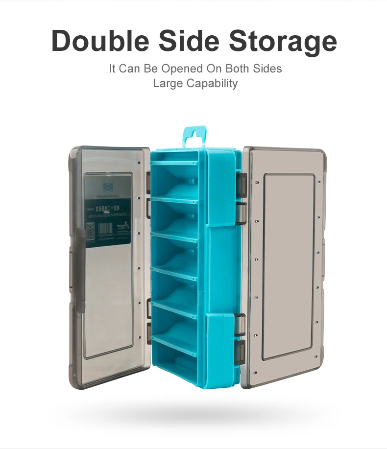 ● Hay 12 compartimentos para almacenar y organizar los aparejos de pesca, 6 compartimentos individuales para cada lado, conveniente para clasificar.