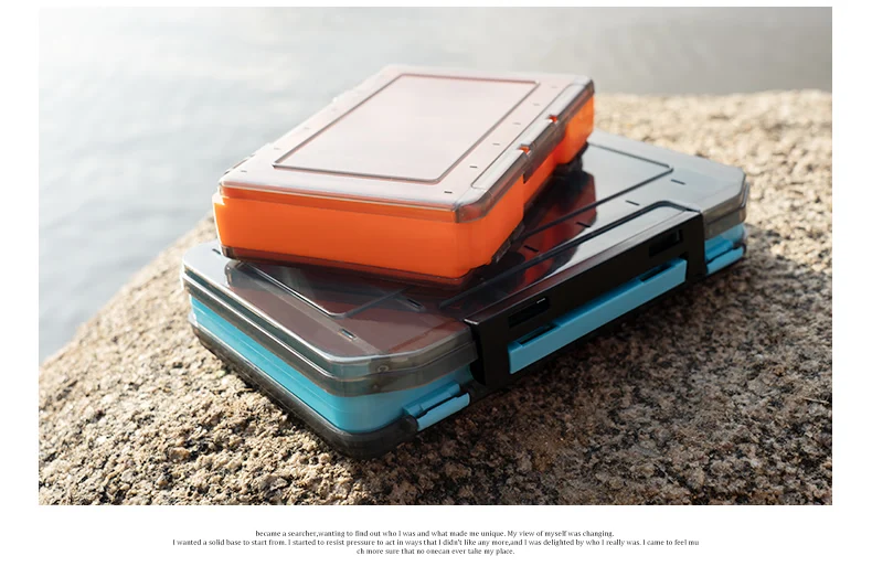 ● Caja de aparejos de pesca portátil, impermeable y de doble cara con cubierta de caja transparente fácilmente visible en el interior