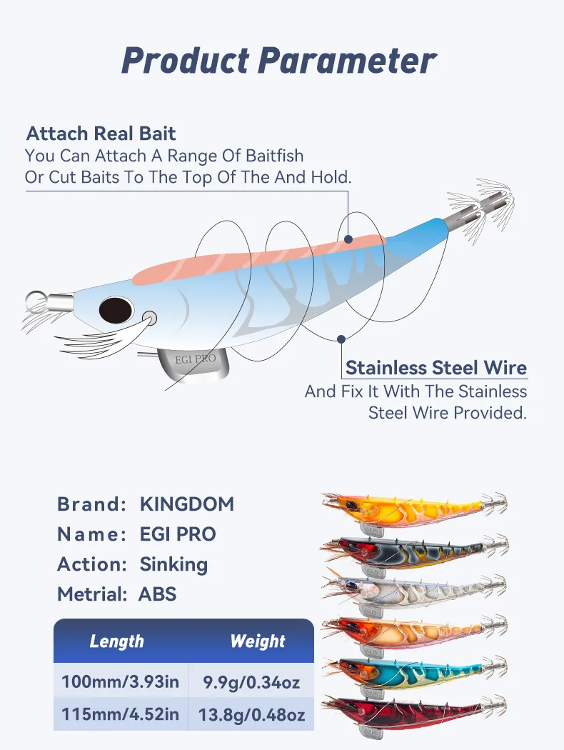 Kingdom calamar Jig madera camarones 9,9g 13,8g hundimiento pulpo Egi luminoso pulpo de aguas profundas sepia cebo Artificial para la venta