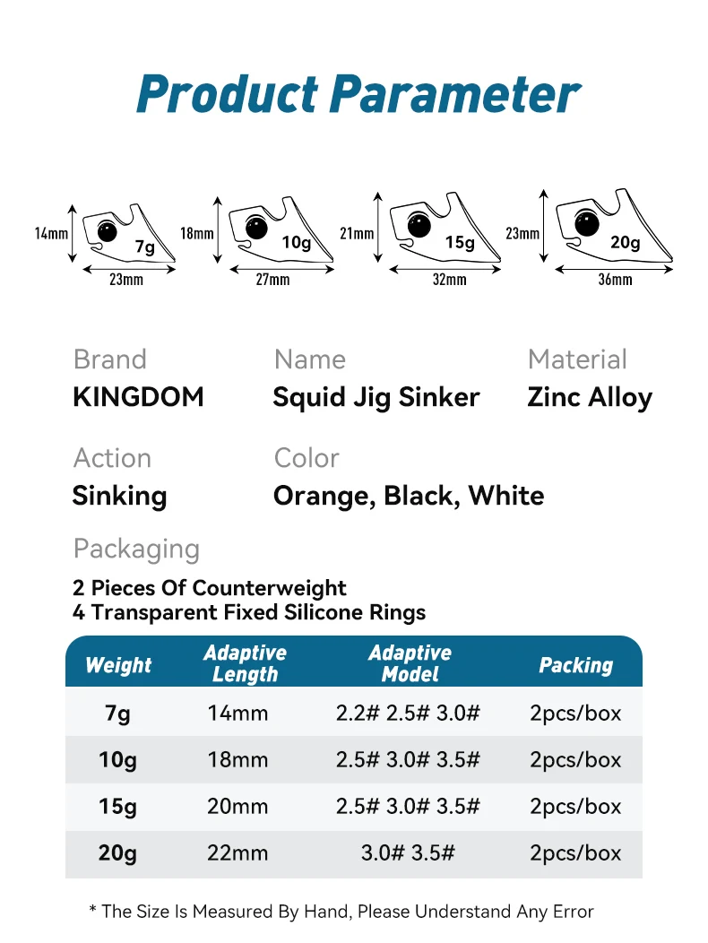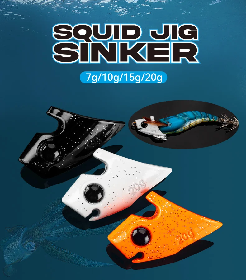 Kingdom Calamar Jig Sinker aparejos de pesca 7g 10g 15g 20g hundimiento luminoso EGI Sinker pulpo sepia accesorios de pesca 2 piezas