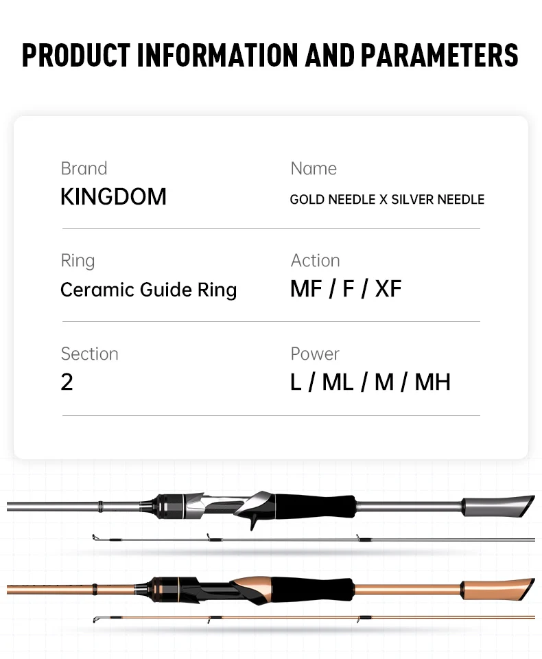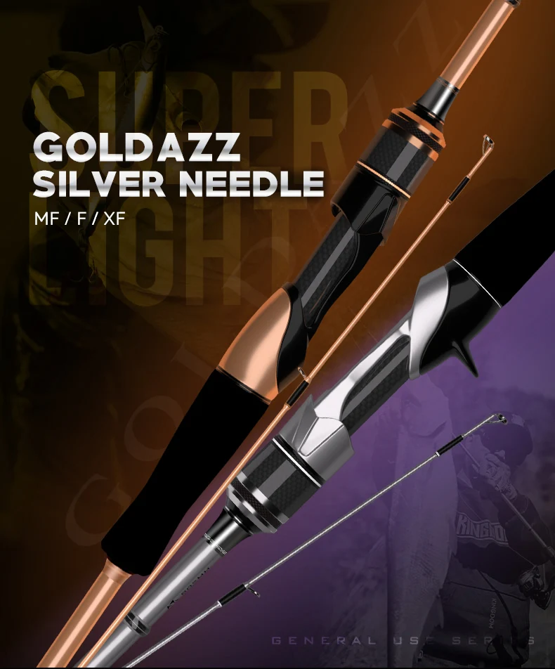 Kingdom GOLDAZZ caña de pescar de fundición giratoria de carbono ultraligera con aguja de plata 1,95 m 2,4 m 2,13 m 2,28 m 2,44 m 2 secciones L/ML/M/MH