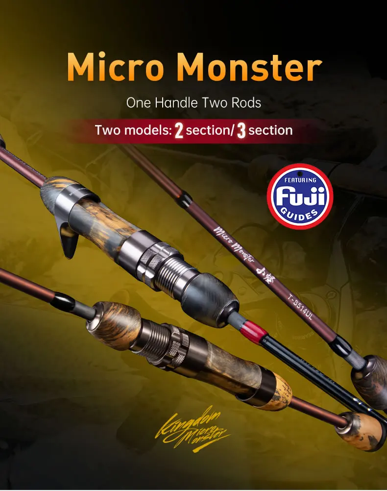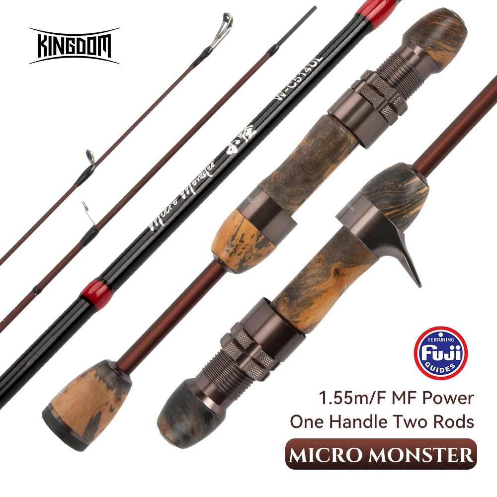 Kingdom Caña de pescar MicroMonster 1,55 M F MF Action Casting Cañas de aparejos giratorios 3 secciones FUJI Guide UL Power Trout Travel Rod