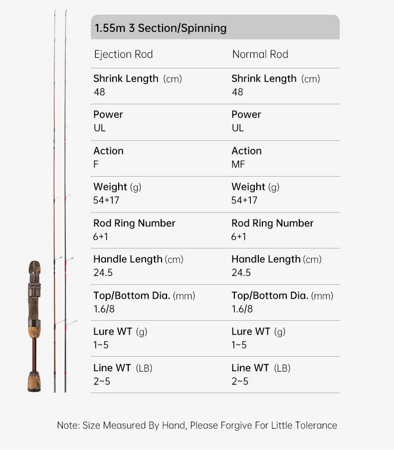 3 secciones ---- Incluye 2 puntas superiores, una es la punta de eyección F Power, la otra es Normal Tip MF Power,UL Super Light Portable Travel Rod.