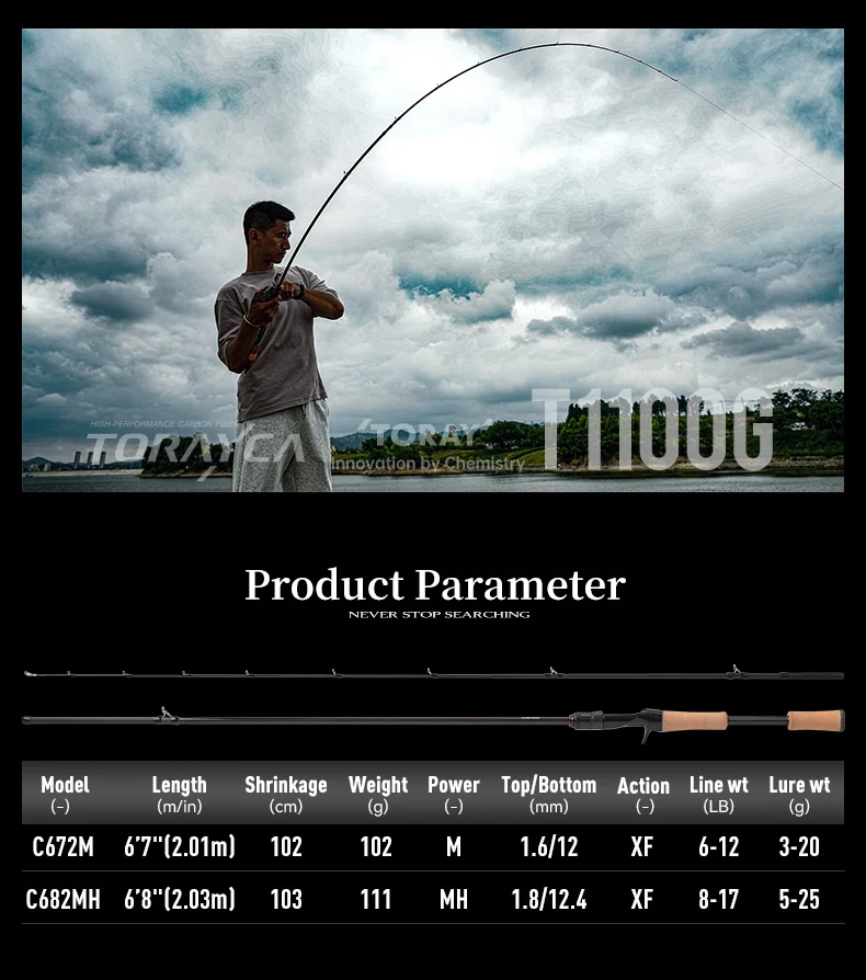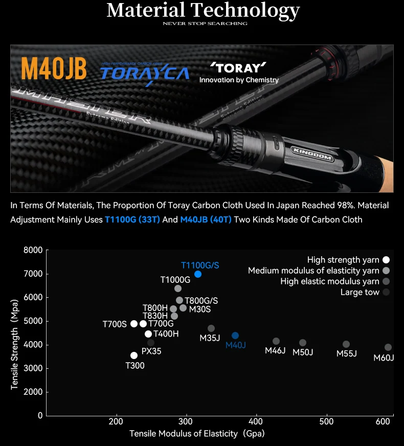 2.Li M40JB con tejido de carbono cruzado T1100G proporciona una excelente ligereza, peso y un fuerte control de los peces, asegurando una excelente retención de los peces.