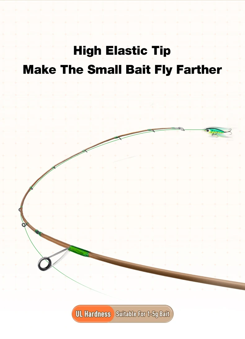 Punta elƔstica alta, hace que el cebo pequeƱo vuele mƔs lejos