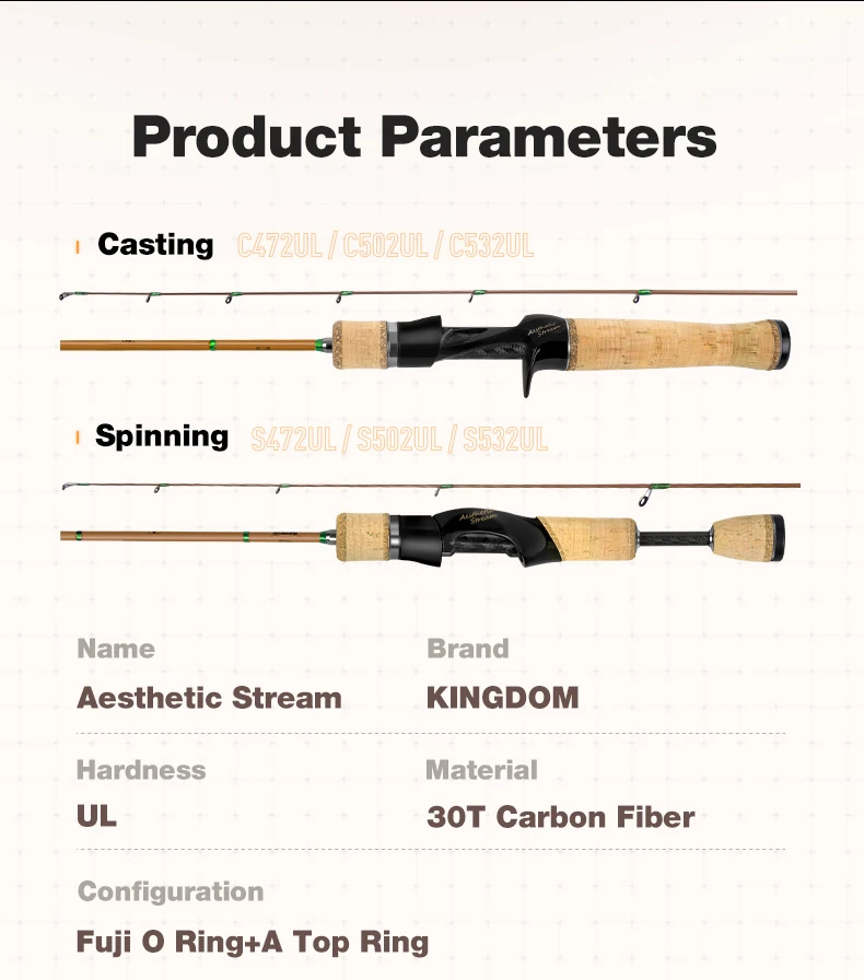 Kingdom AESTHETIC STREAM Spinning Casting CaƱas de pescar 1,43 M 1,5 m 1,59 M FUJI Guide Carbon UL Power MF Act Baitcasting Travel Rod