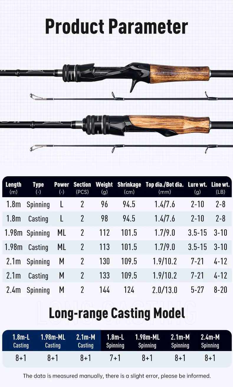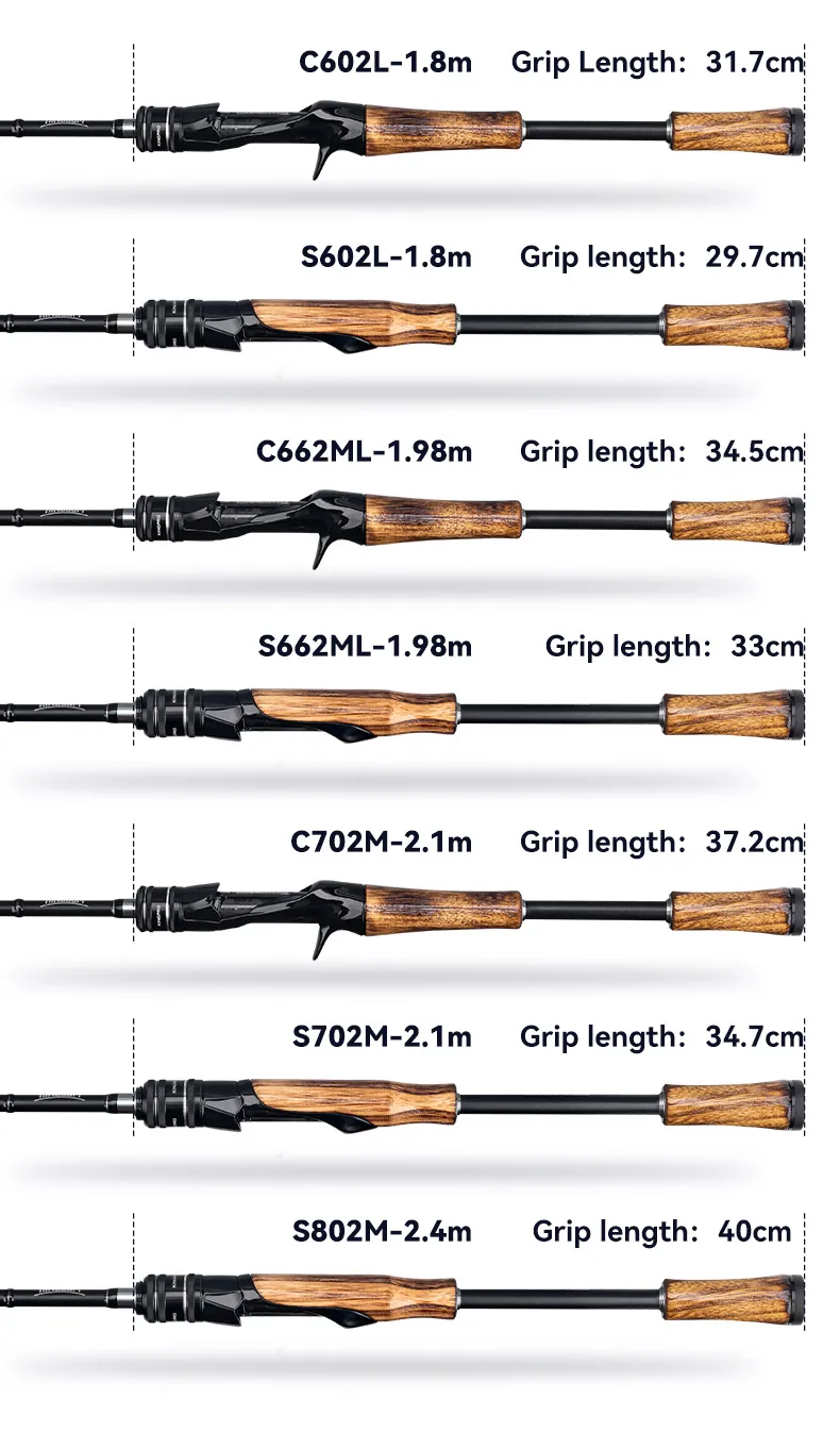 Kingdom-cañas de pescar Kingpro2 Series, 1,8 m, 1,98 m, 2,1 m, M ML L, potencia MF, acción giratoria, fundición, caña de pescar de carbono, 2 secciones