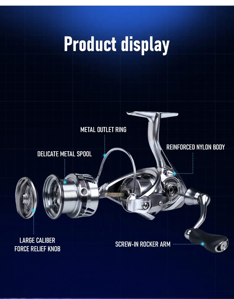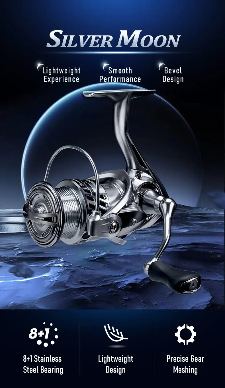 Carretes de pesca giratorios Kingdom Silver Moon 5,2: 1 relación de engranaje 9 kg resistencia máxima 8 + 1 rodamientos carrete de pesca corporal de nailon de carbono de agua dulce