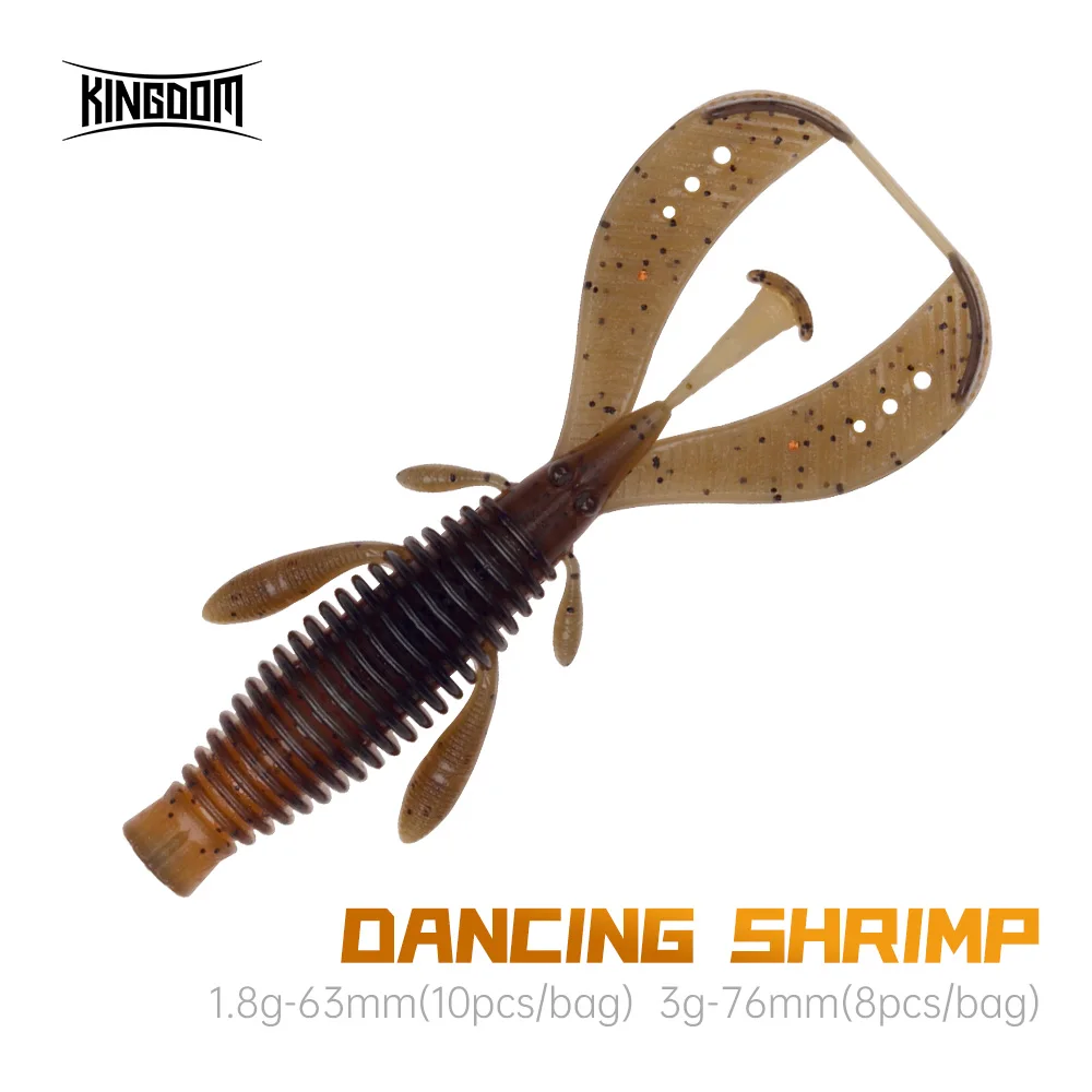 Kingdom-Cebo blando para bailar Camarón, cebo Artificial flotante de 63mm, 76mm, 1,8g, 3g, gusano, TPE, Lucio, 8/10 piezas