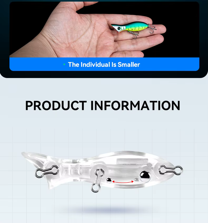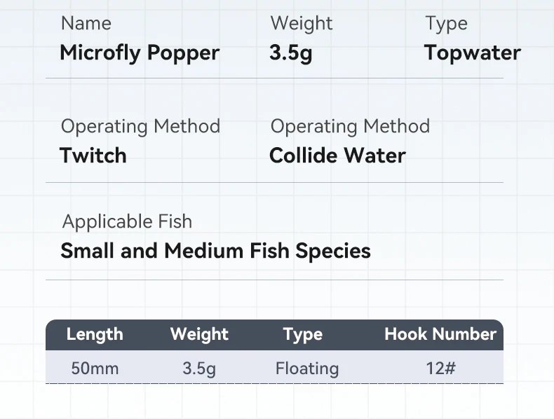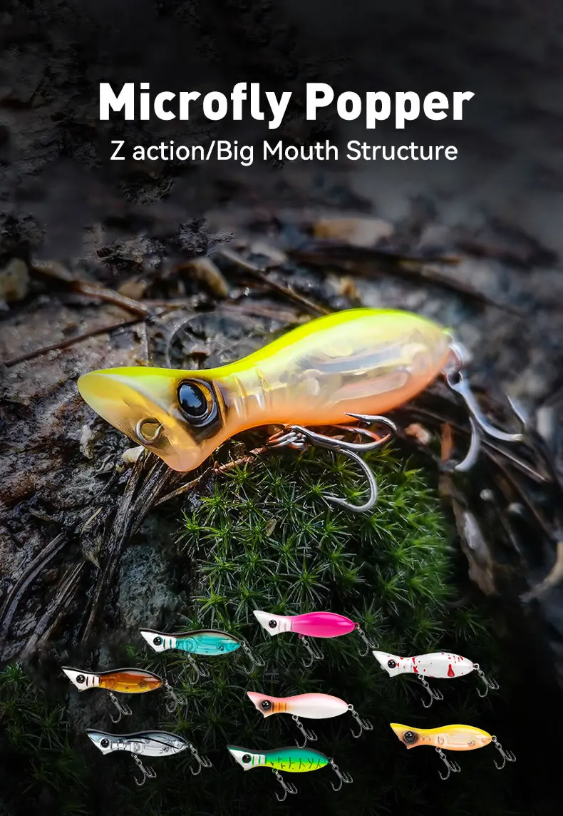 Kingdom-cebo de pesca Microfly Popper, 50mm, 3,5g, ojos de pez 3D, pintura exquisita más fácil para atraer la superficie del pez, señuelo duro Artificial