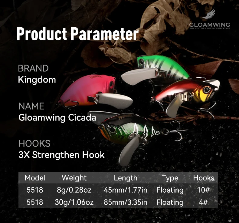 Kingdom Cicada Topwater Lures 45mm 8g 85mm 30g Floating Saltwater Bionic Insect With Metal Wings Hard Wobblers For Bass Fishing